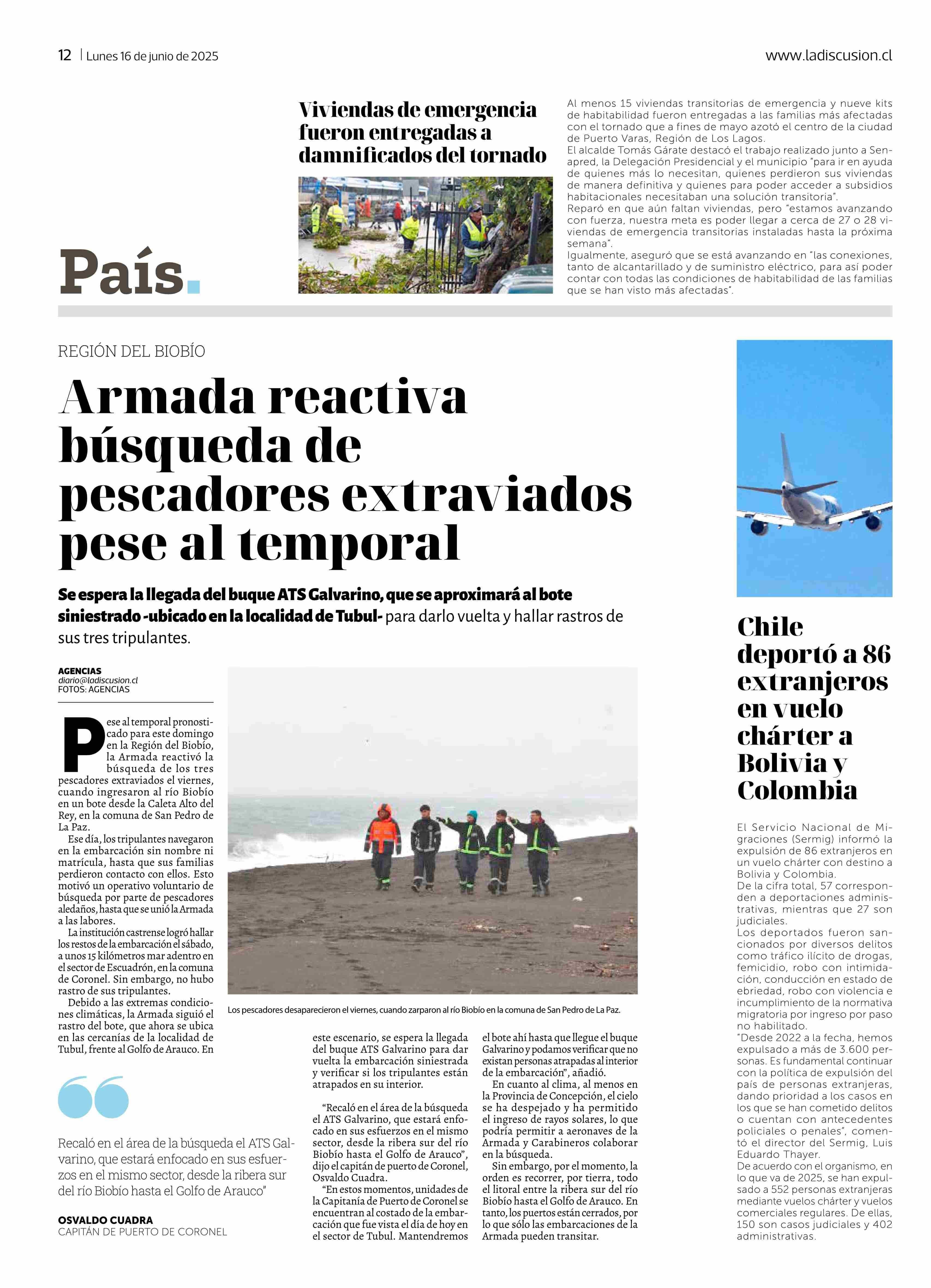 Armada reactiva búsqueda de pescadores extraviados pese al temporal 16-06-2025 La Discusión |
