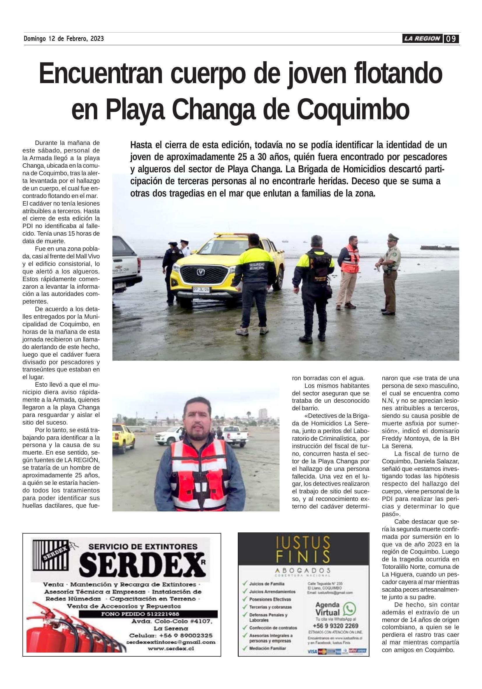 Encuentran cuerpo de joven flotando en Playa Changa de Coquimbo 12-02-2023 Diario la Región |
