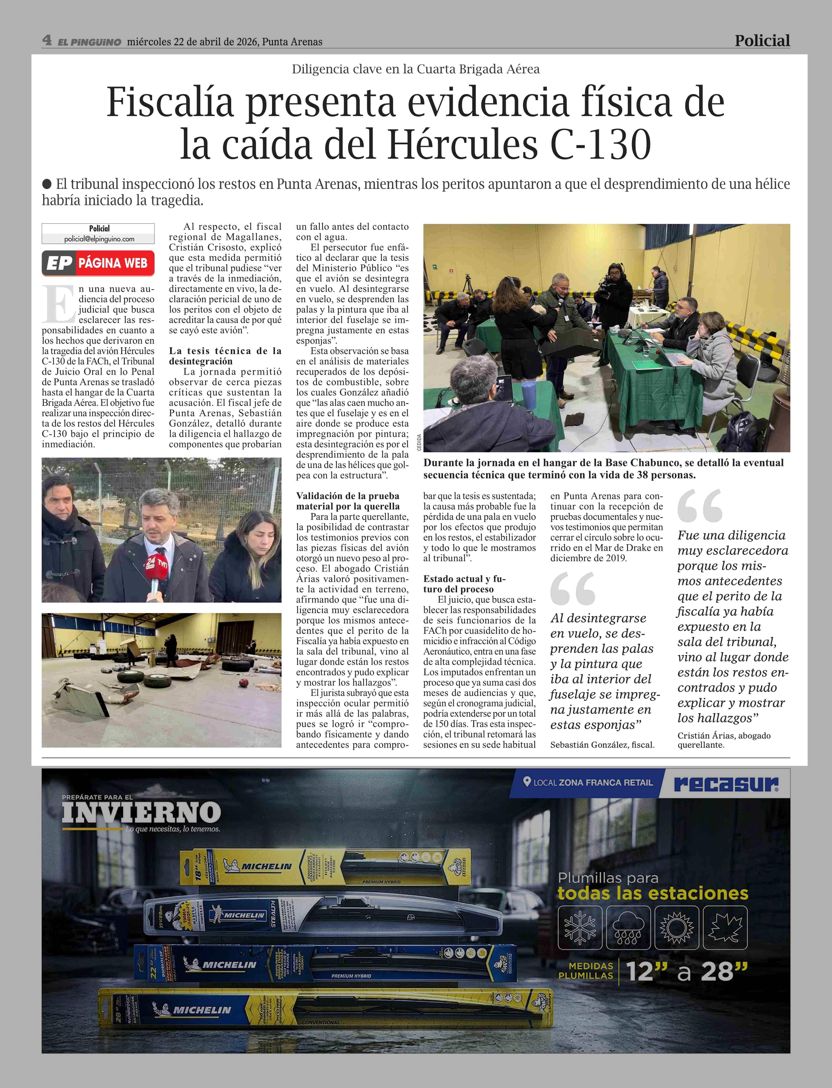 Fiscalía presenta evidencia física de la caída del Hércules C-130 22-04-2026 El Pingüino |