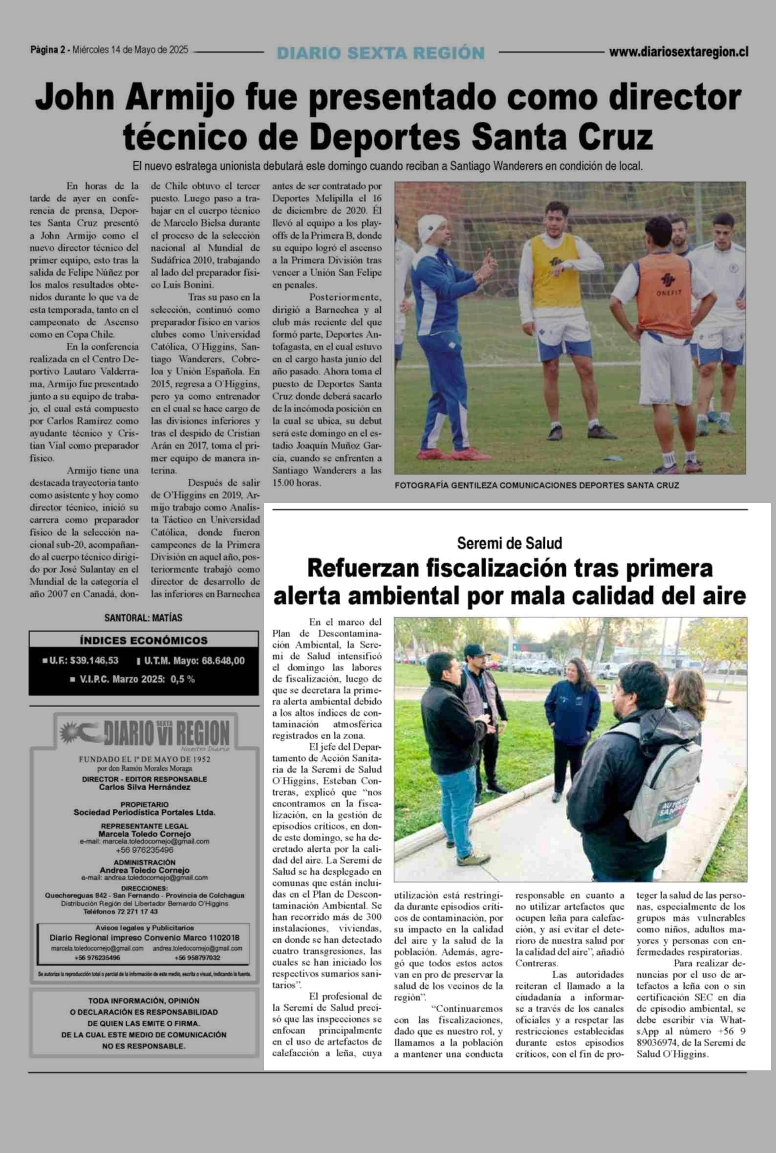 | Fecha: | 14-05-2025 | Sector: | Noticia general | Región: | Región del Libertador General Bernardo O'Higgins |