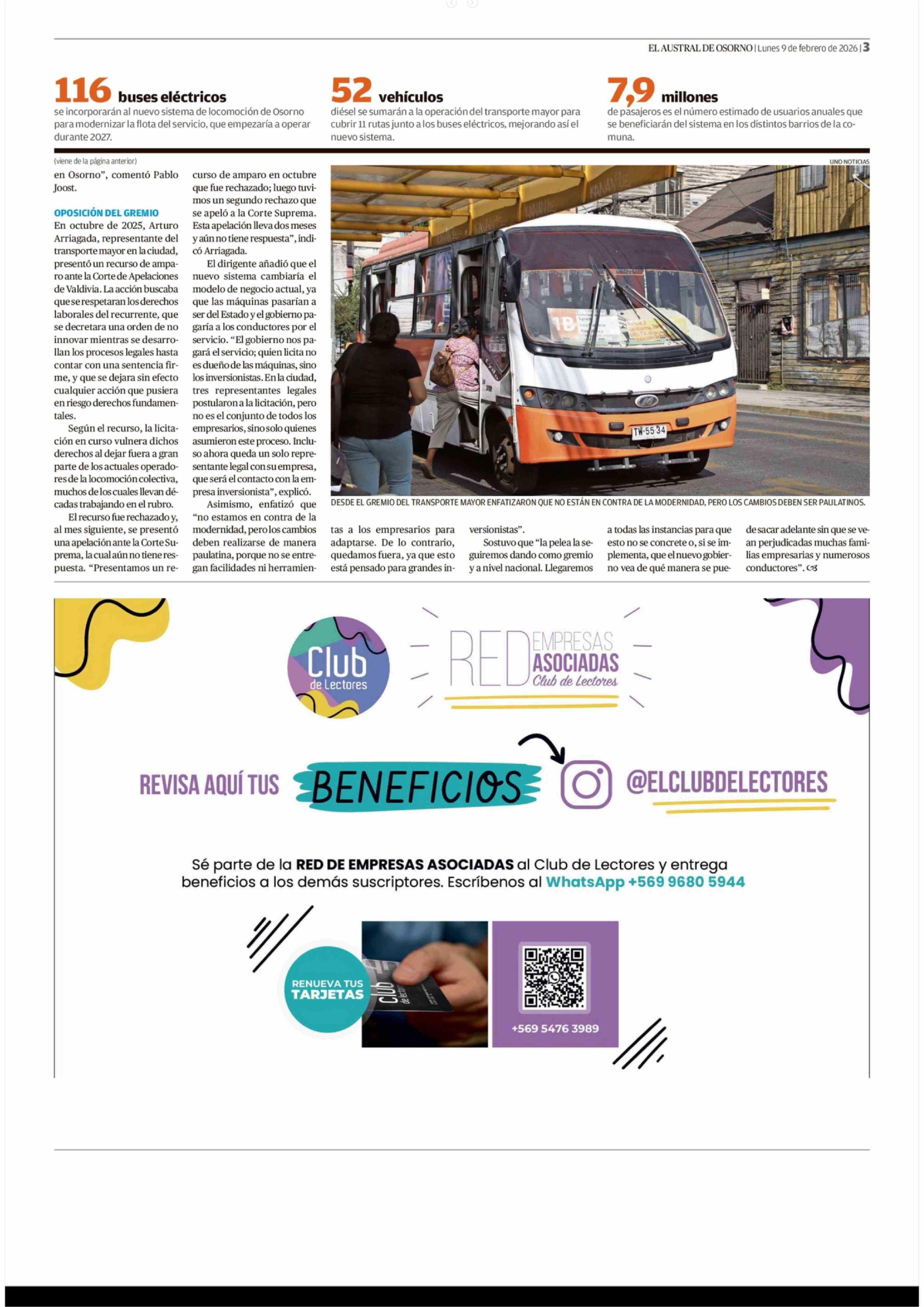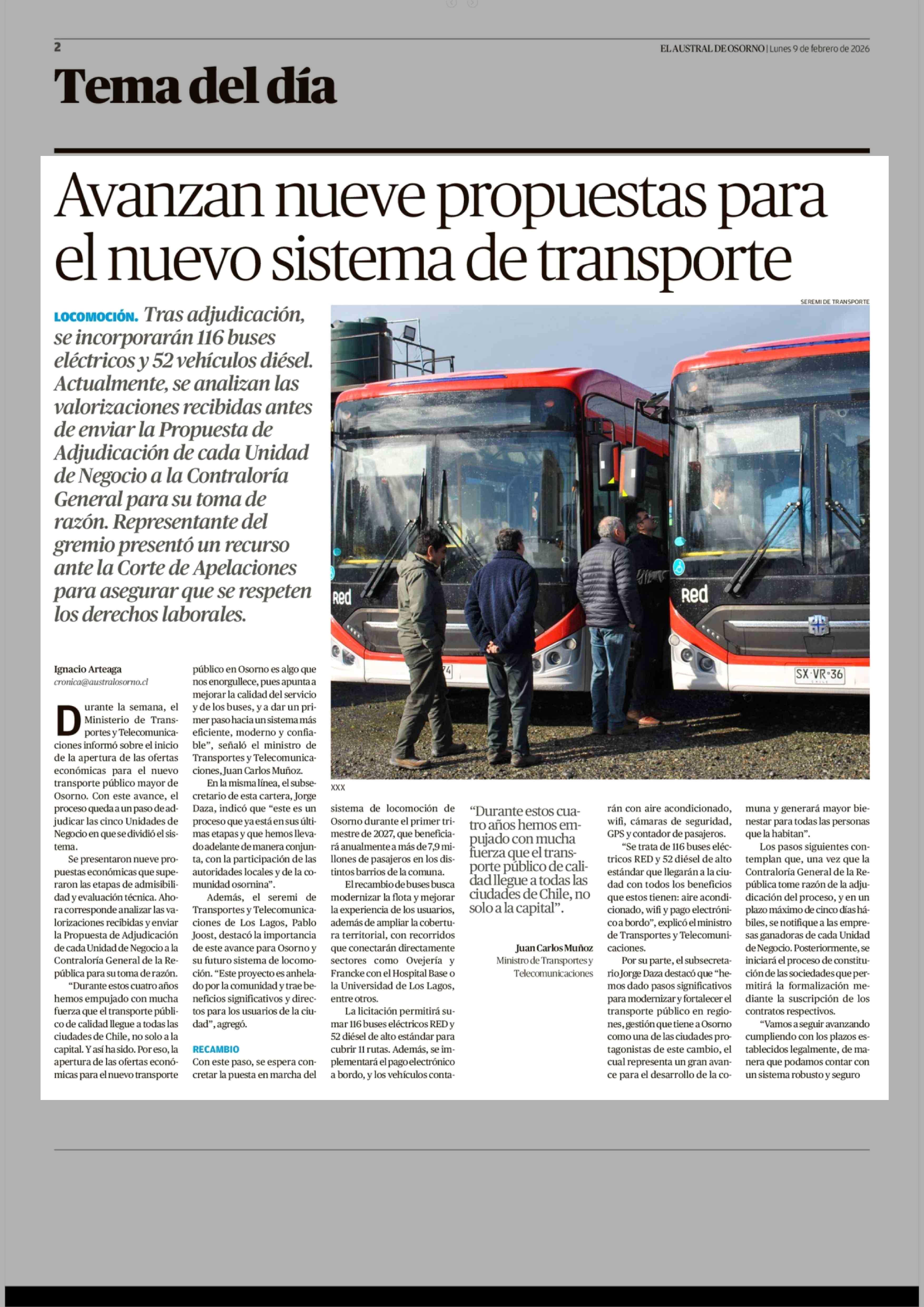 Avanzan nueve propuestas para el nuevo sistema de transporte 09-02-2026 El Austral de Osorno |