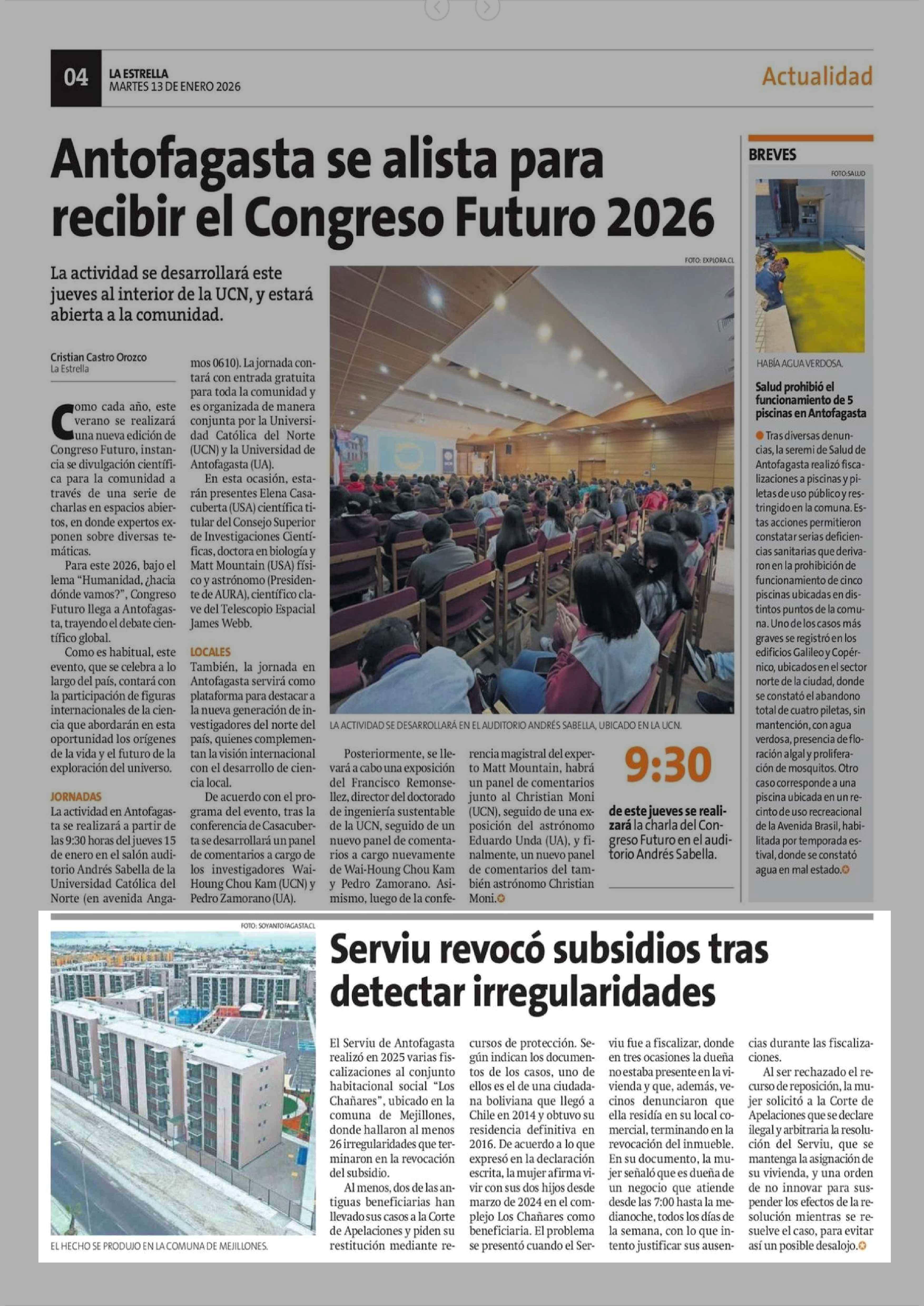 | Fecha: | 13-01-2026 | Sector: | Noticia general | Región: | Región de Antofagasta |