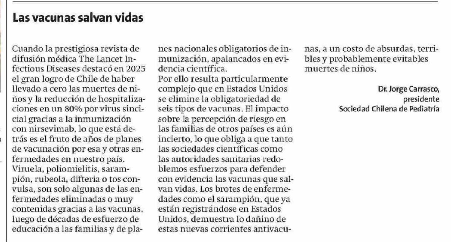 Título: Columnas de Opinión: Las vacunas salvan vidas