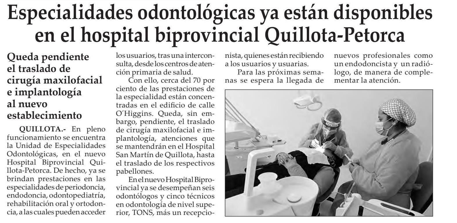 | Título: | Especialidades odontológicas ya están disponibles en el hospital biprovincial Quillota-Petorca |