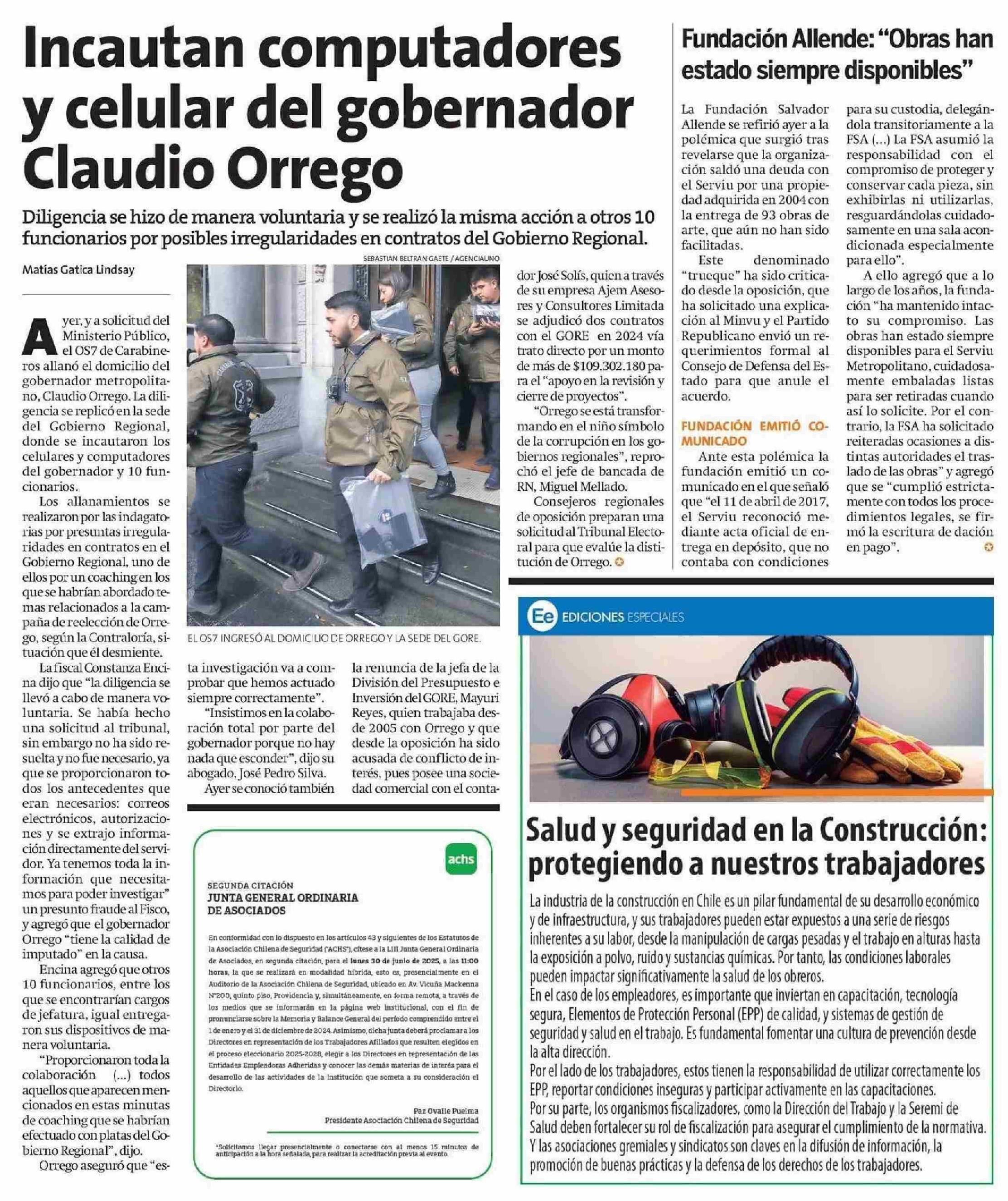 Incautan computadores y celular del gobernador Claudio Orrego 17-06-2025 La Estrella de Arica |