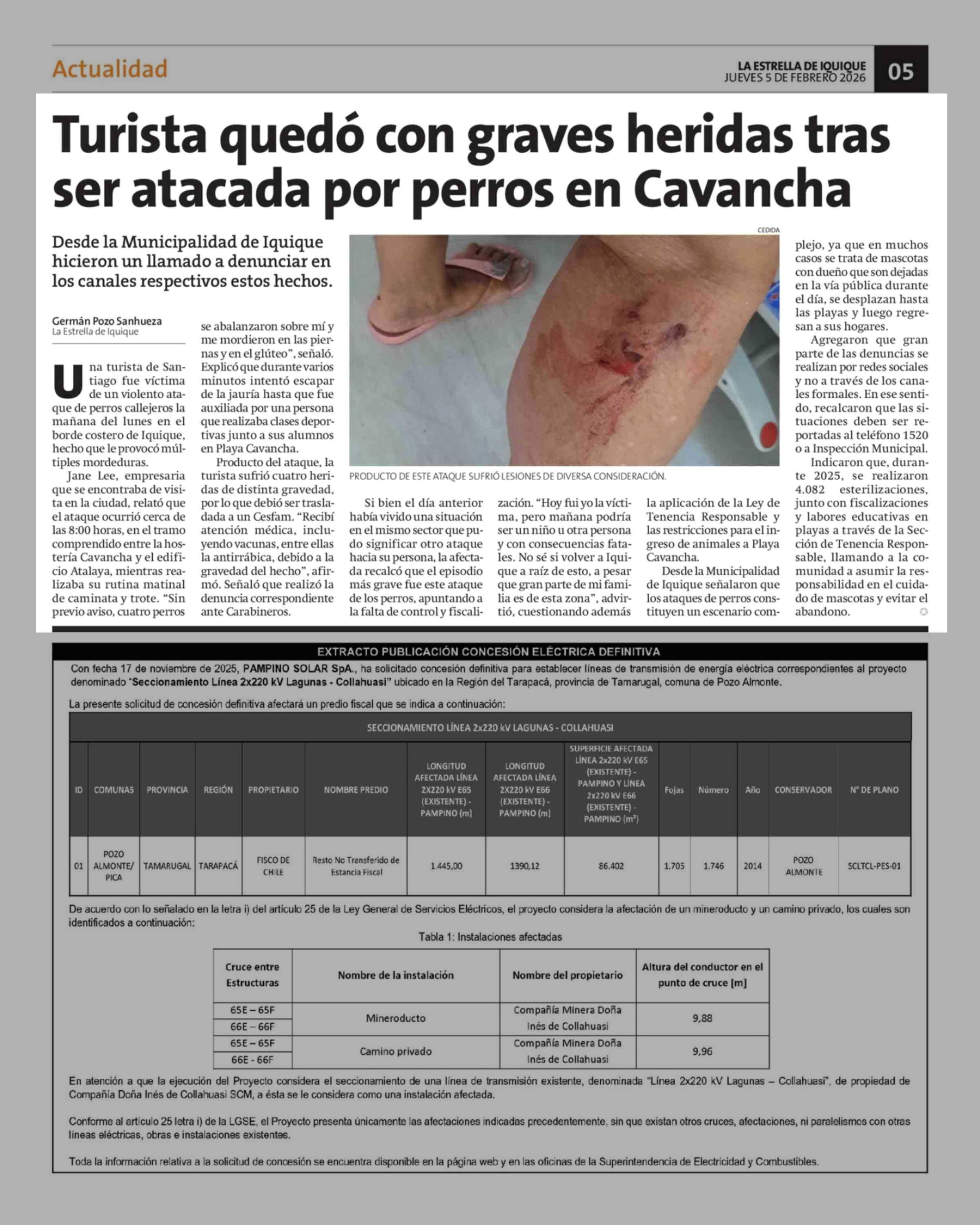 Turista quedó con graves heridas tras ser atacada por perros en Cavancha 05-02-2026 La Estrella de Iquique |