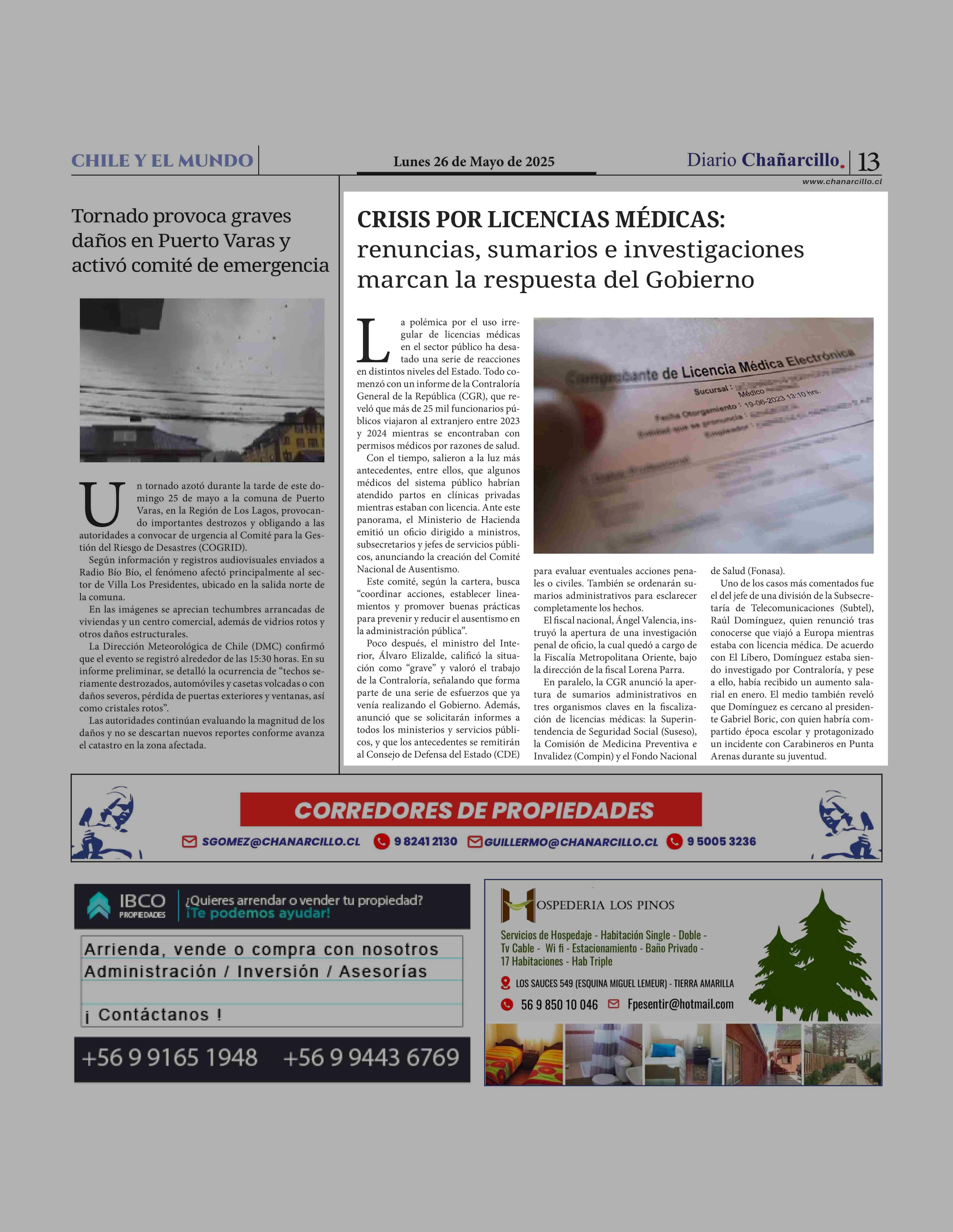 CRISIS POR LICENCIAS MÉDICAS: renuncias, sumarios e investigaciones marcan la respuesta del Gobierno 26-05-2025 Diario Chañarcillo |
