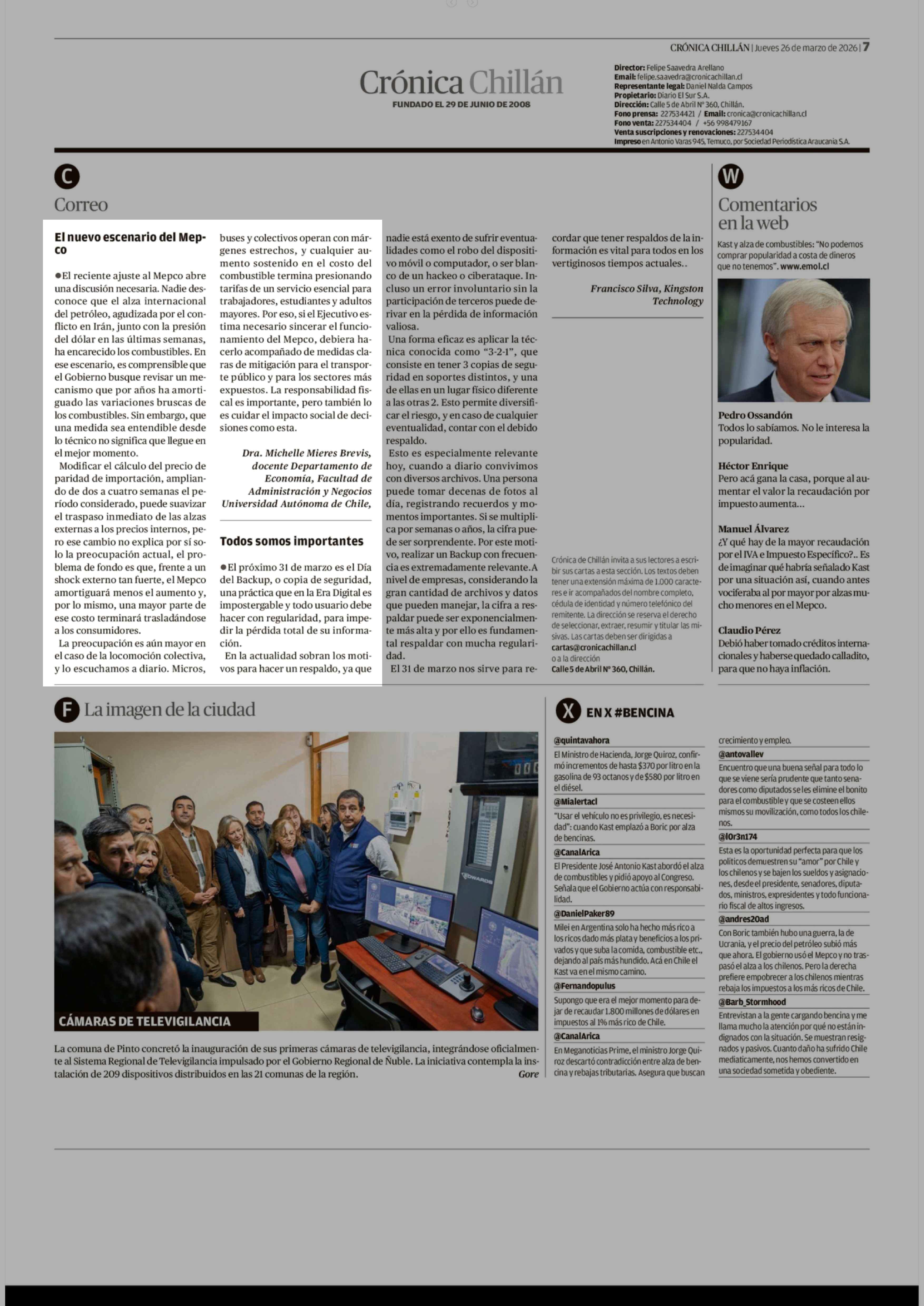 Cartas: El nuevo escenario del Mepco 26-03-2026 Crónica de Chillán |