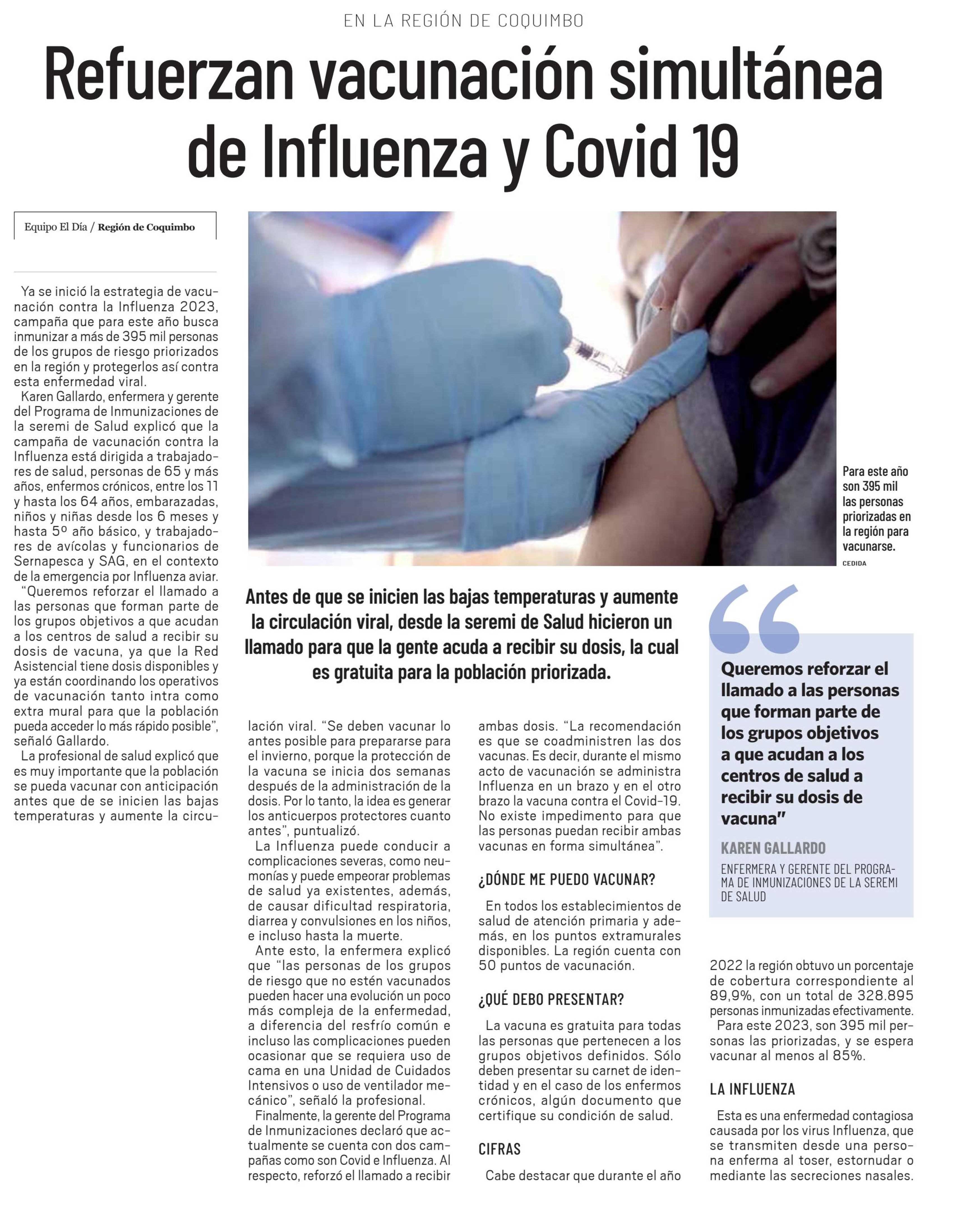 Refuerzan vacunación simultánea de Influenza y Covid 19 17-03-2023 El Día |