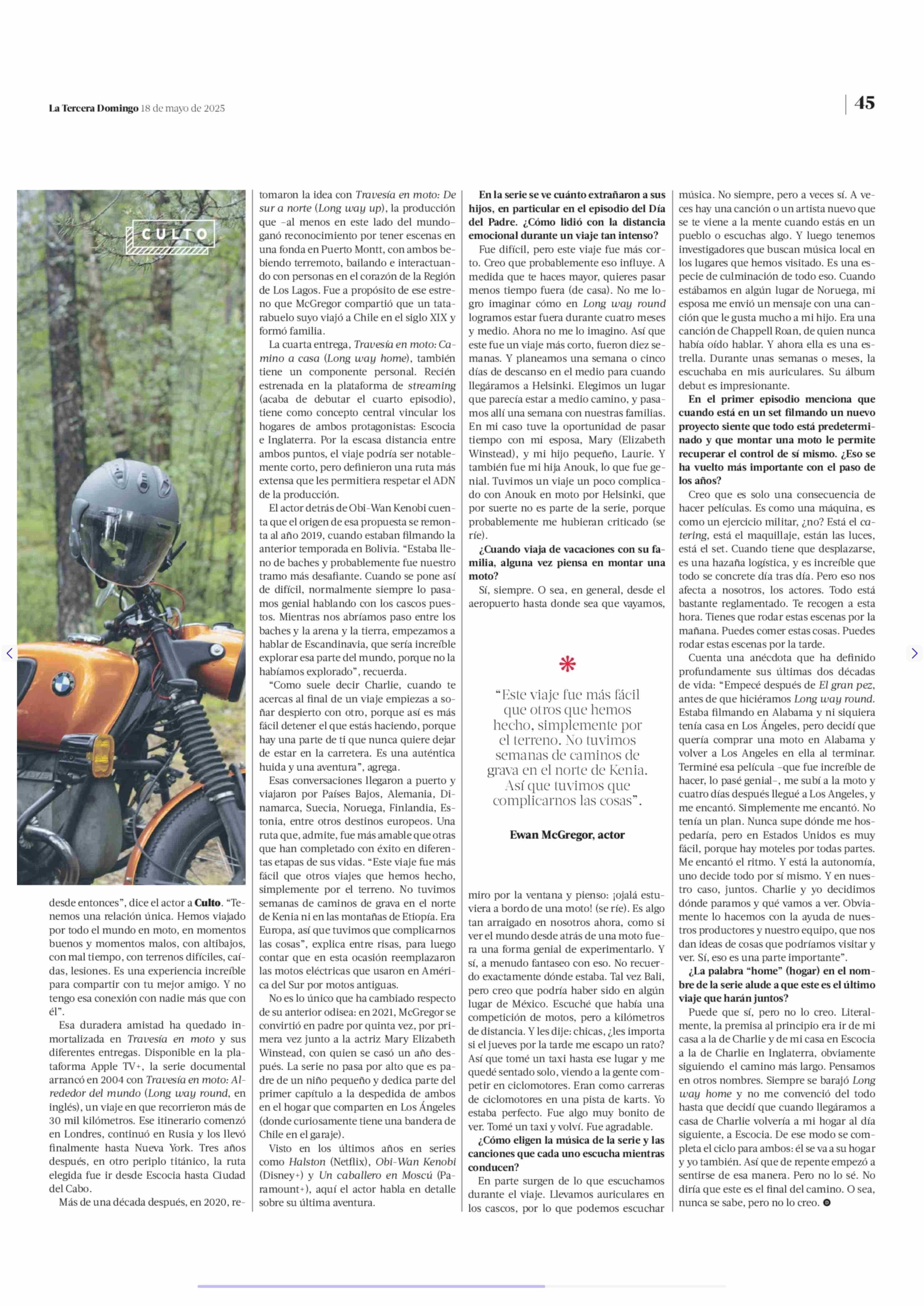 EWAN MCGREGOR “A medida que te haces mayor, quieres pasar menos tiempo fuera de casa” 18-05-2025 La Tercera |