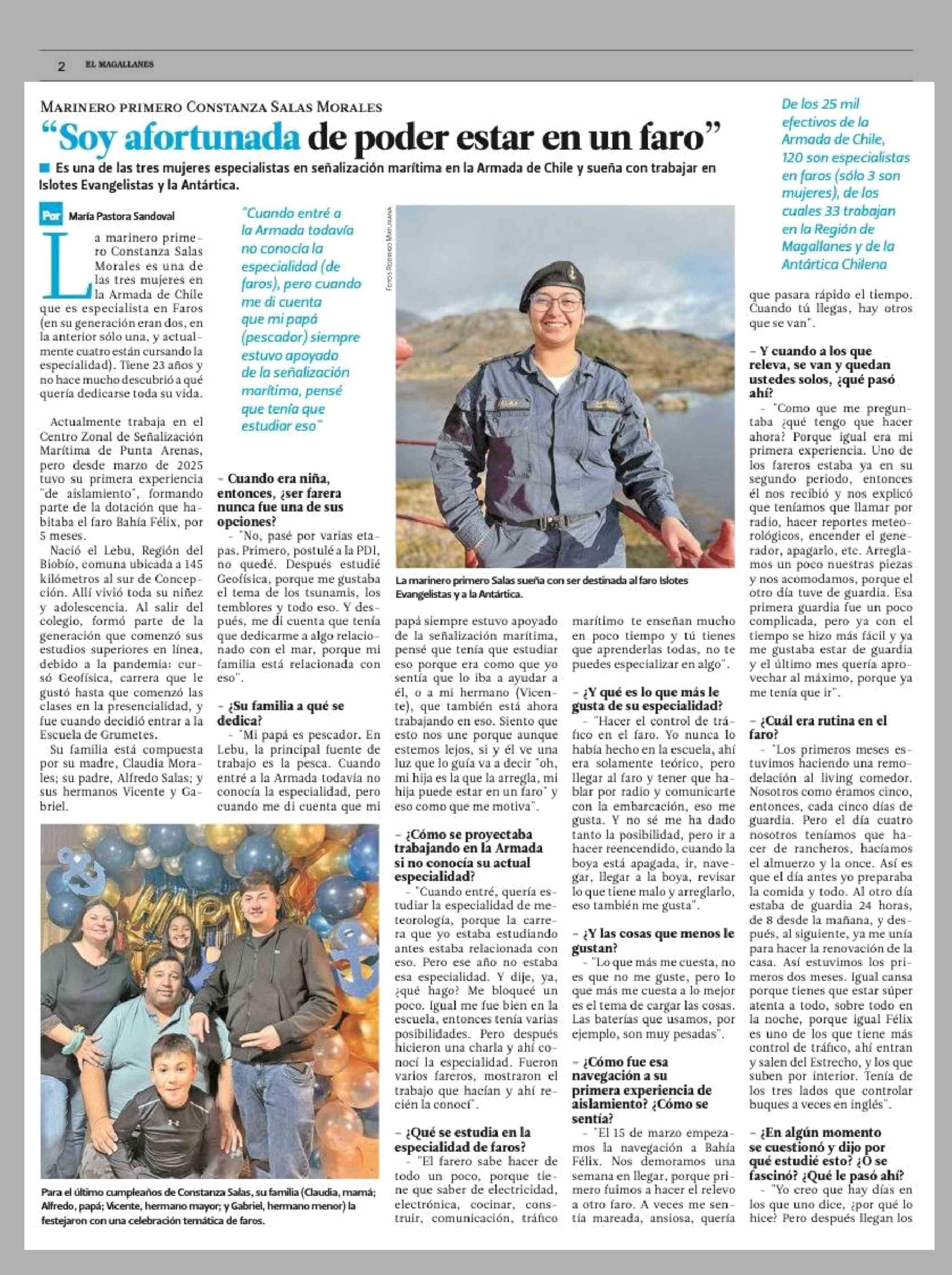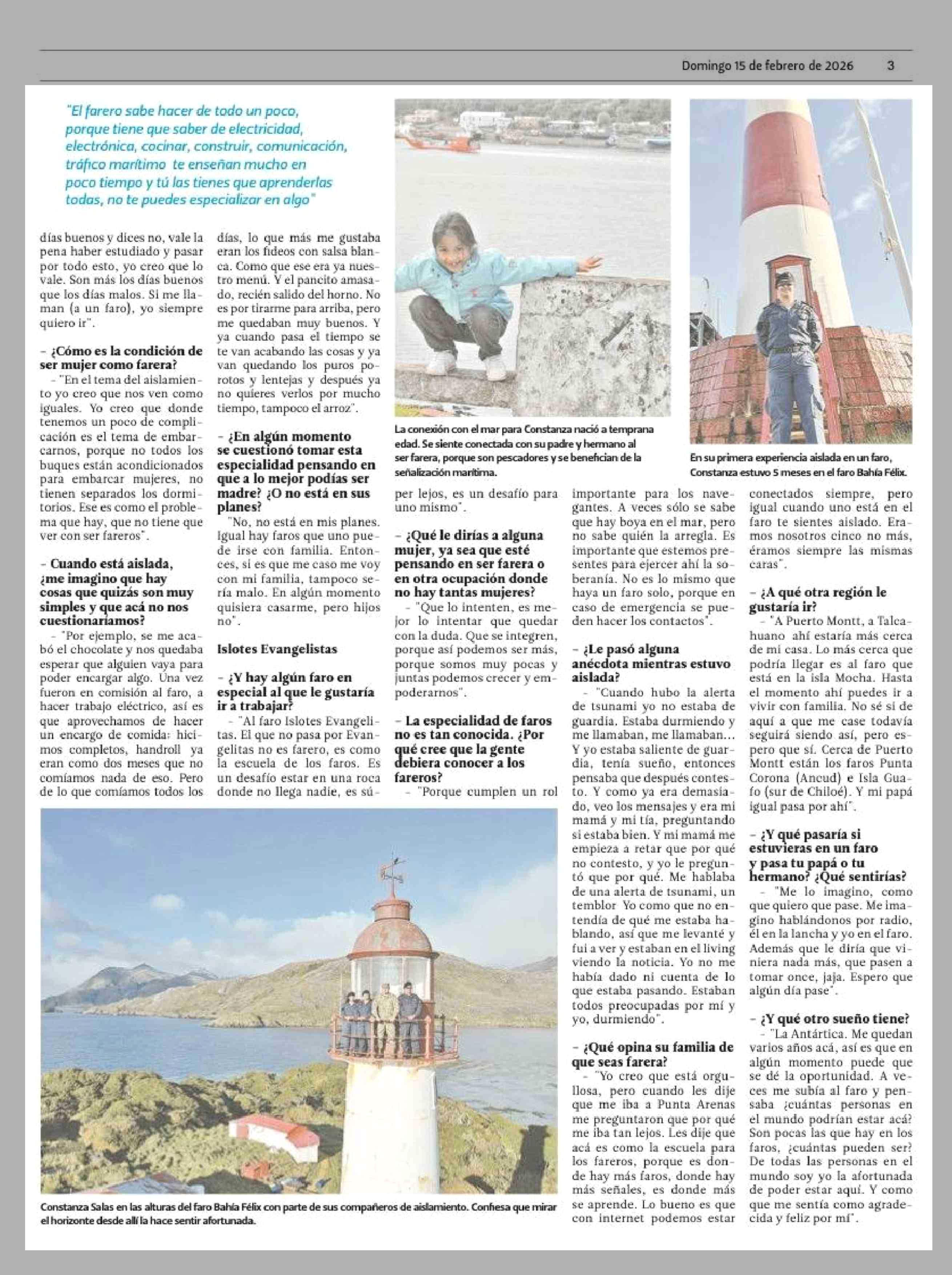 'Soy afortunada de poder estar en un faro" 15-02-2026 El Magallanes |