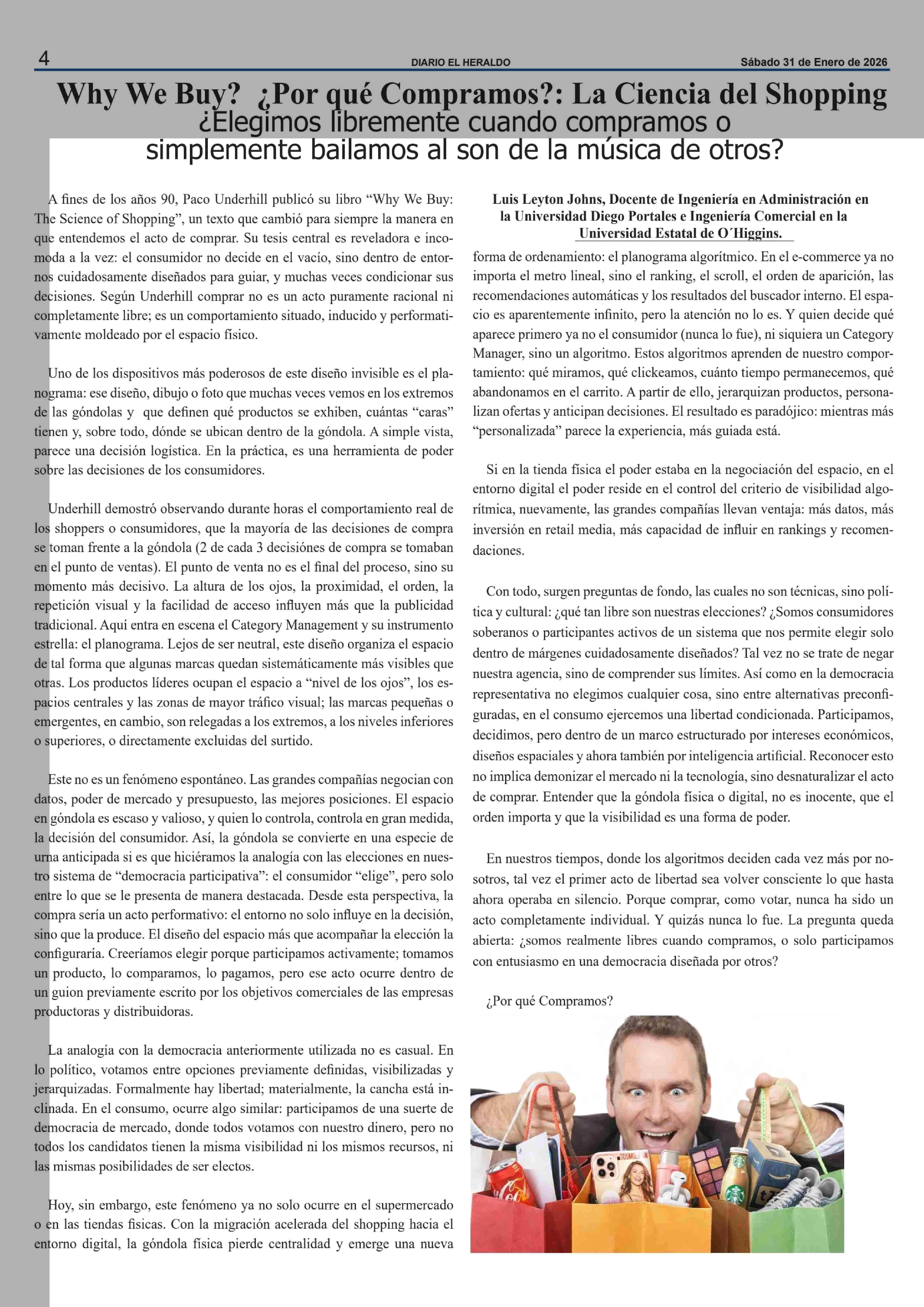 Why We Buy? ¿ Por qué Compramos ?: La Ciencia del Shopping ¿Elegimos libremente cuando compramos o simplemente bailamos al son de la música de otros? 31-01-2026 El Heraldo |