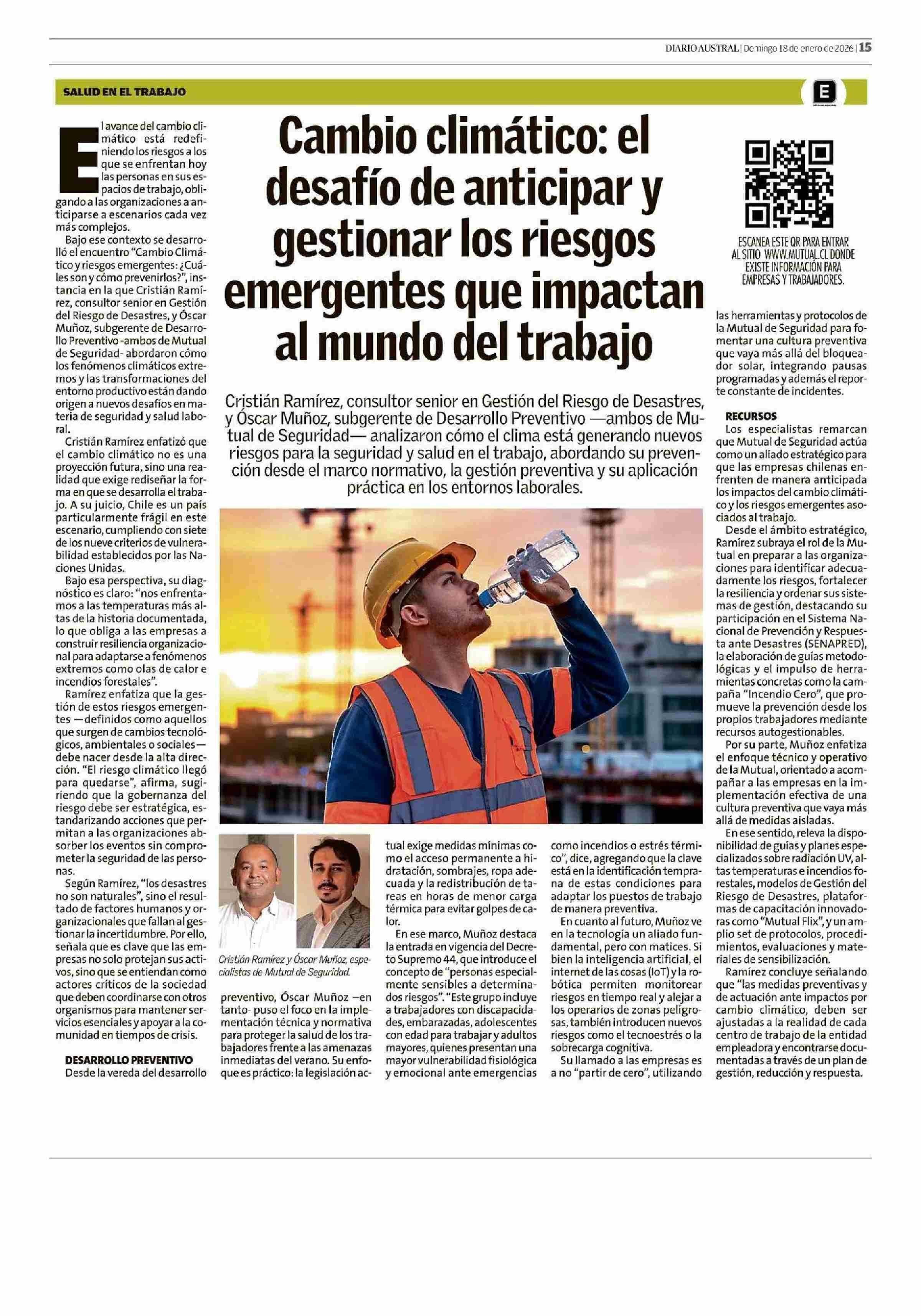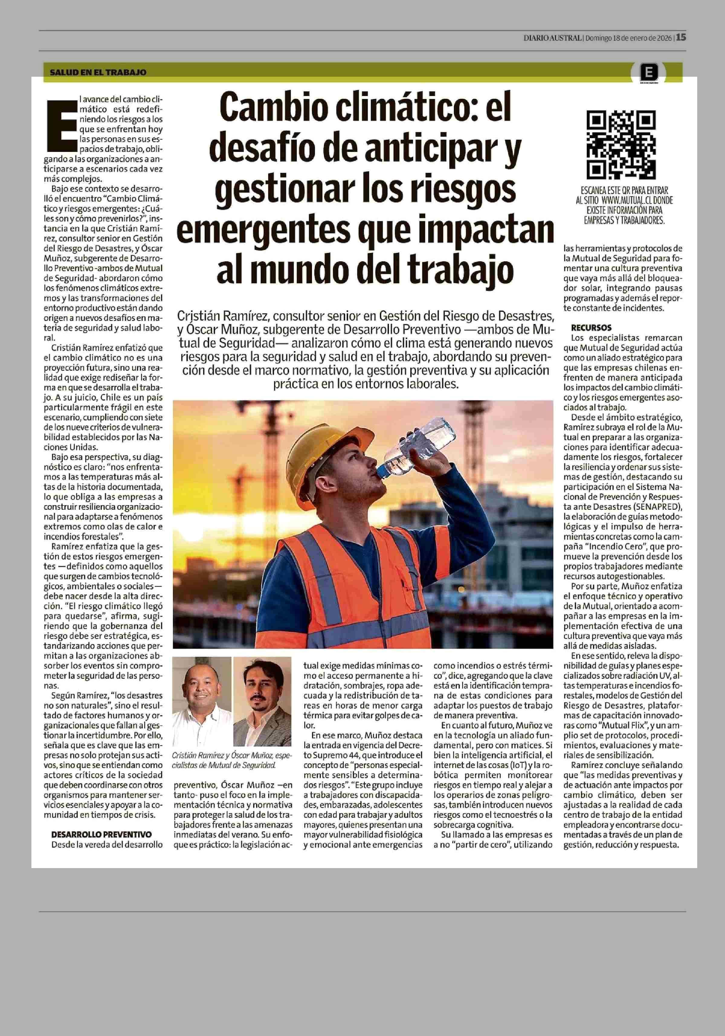 Cambio climático: el desafío de anticipar y gestionar los riesgos emergentes que impactan al mundo del trabajo 18-01-2026 Diario Austral Región de Los Ríos |