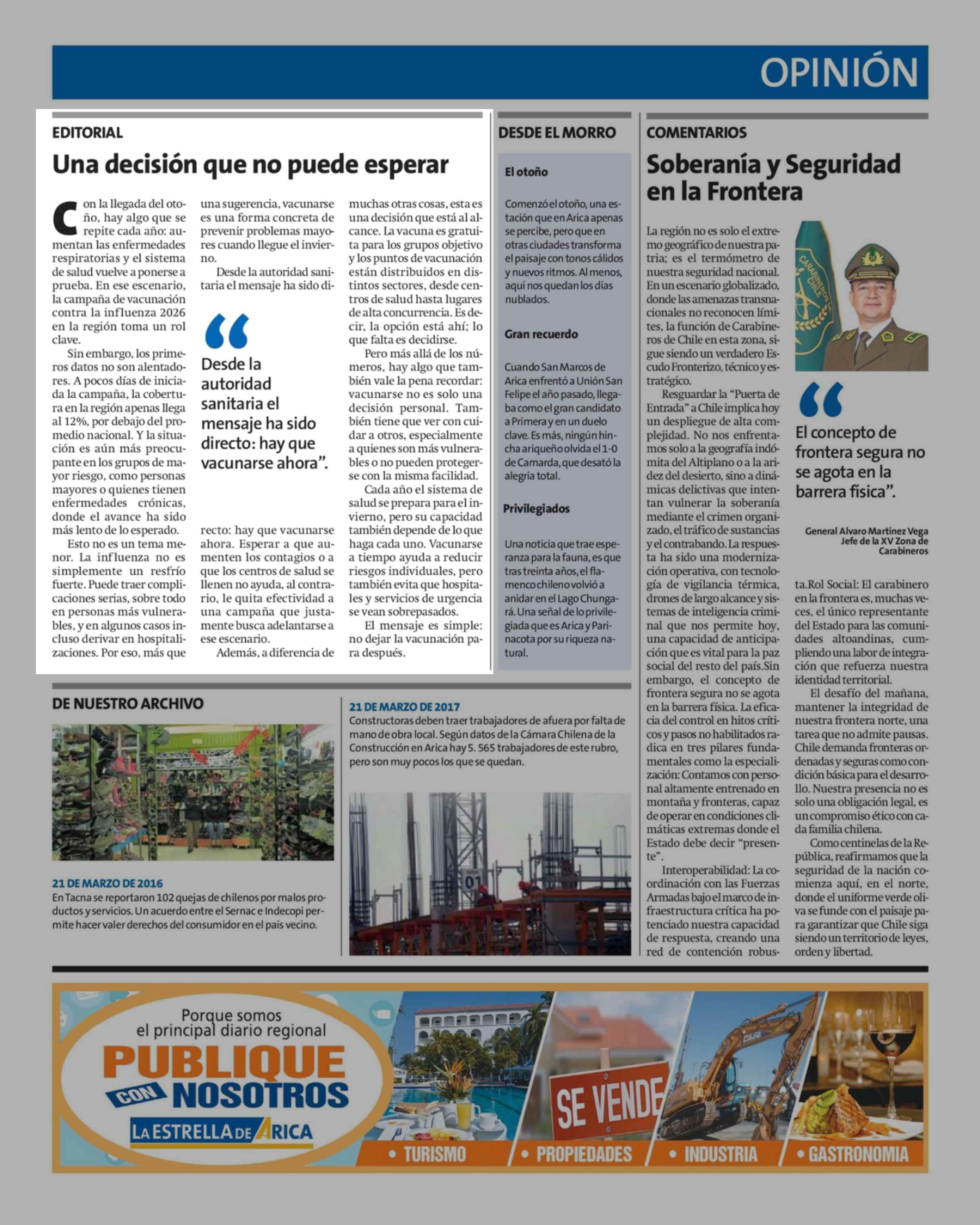 Fecha: 21-03-2026 Sector: Editorial Región: Región de Arica y Parinacota