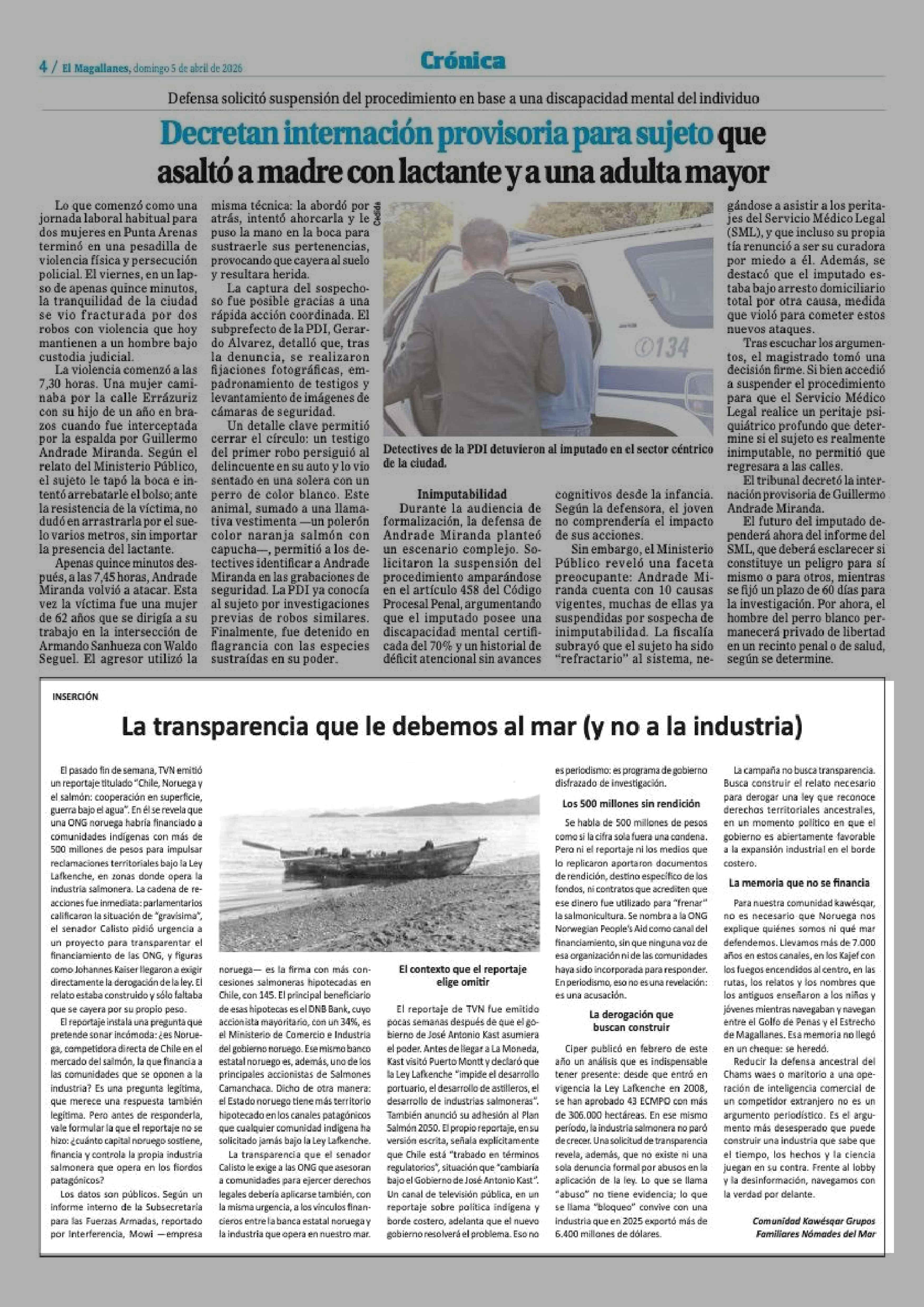 Fecha: 05-04-2026 Sector: Noticia general Región: Región de Magallanes y de la Antártica Chilena