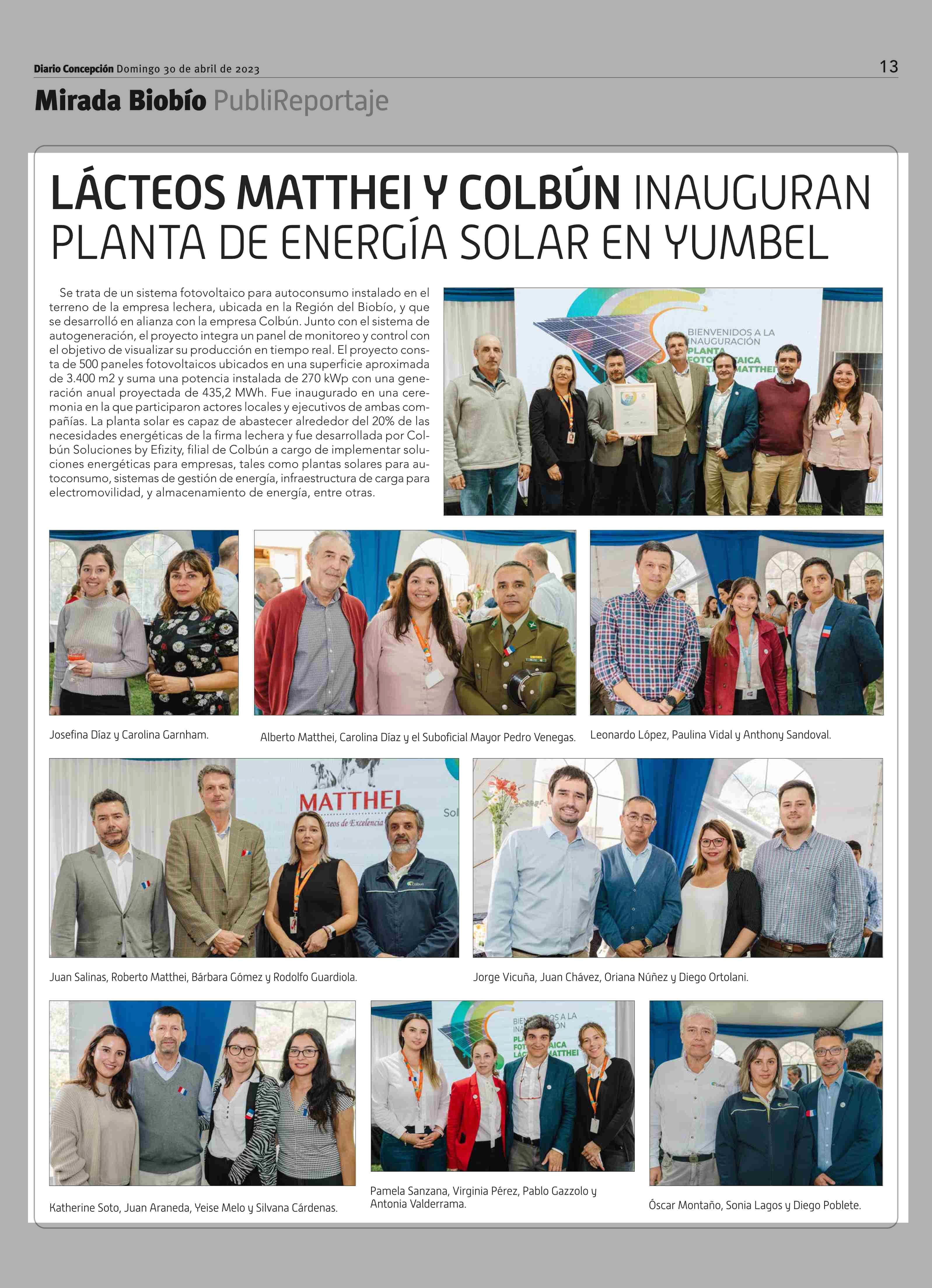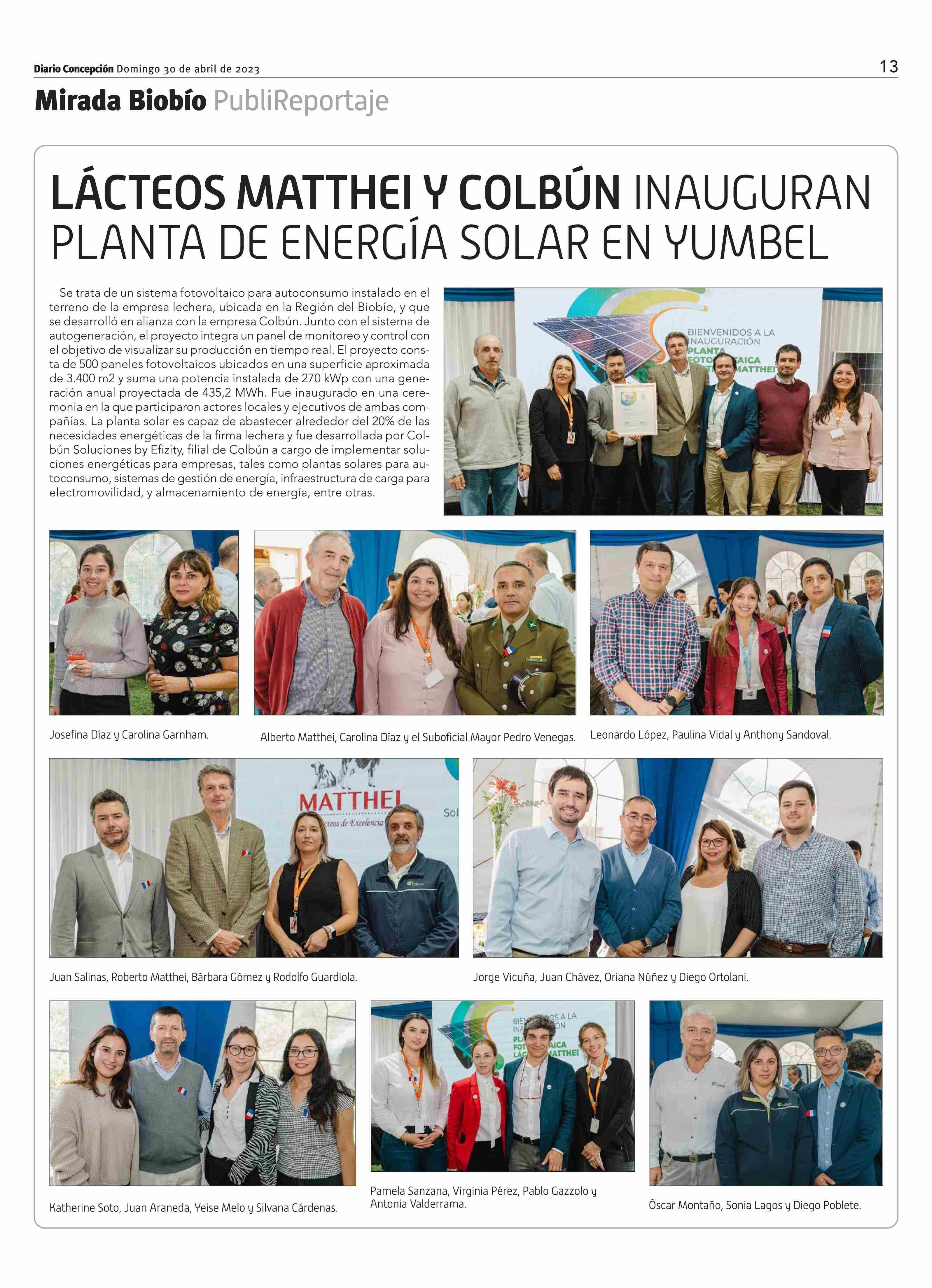 Título: LÁCTEOS MATTHEl Y COLBÚN INAUGURAN PLANTA DE ENERGÍA SOLAR EN YUMBEL