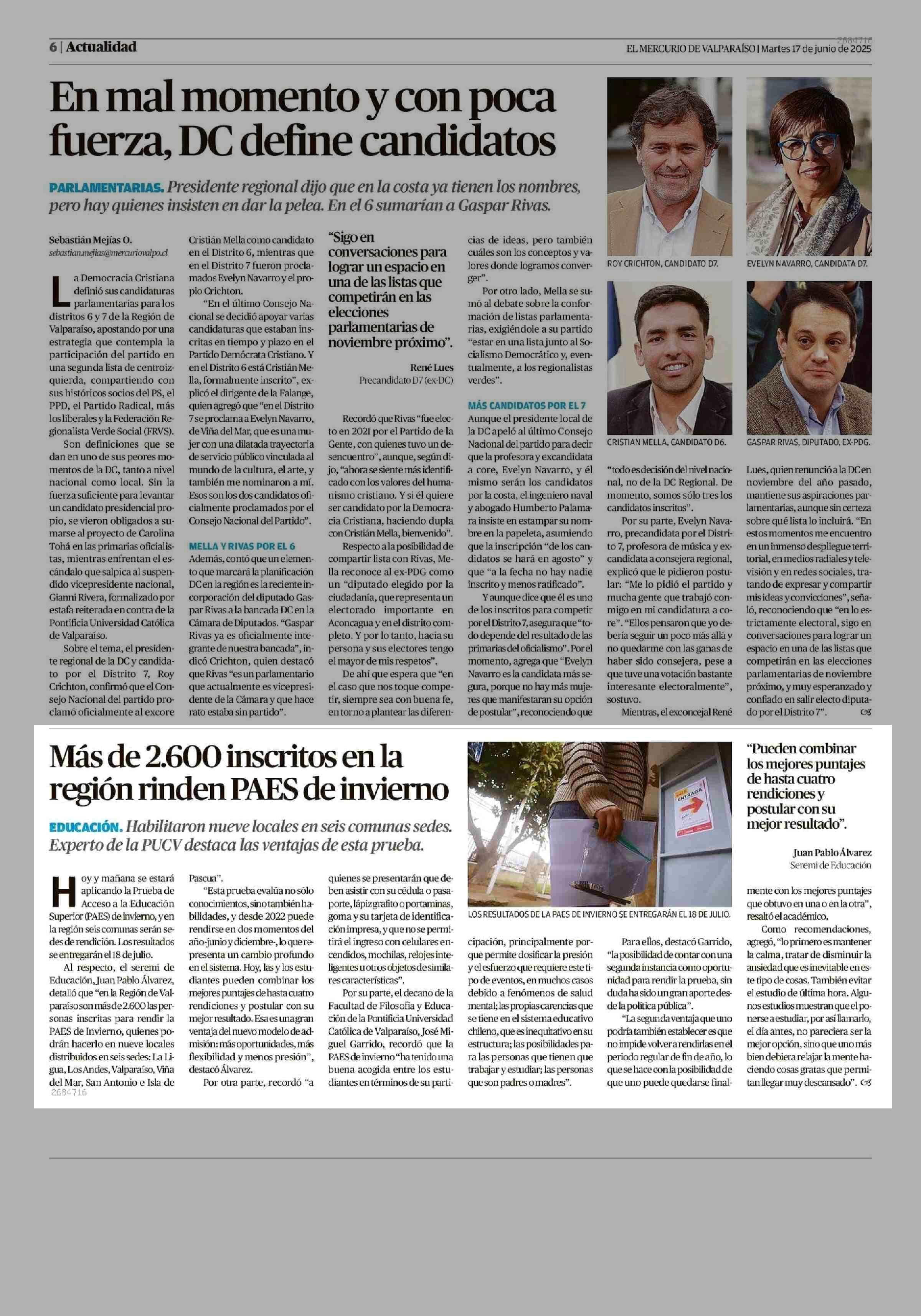 Más de 2.600 inscritos en la región rinden PAES de invierno 17-06-2025 El Mercurio de Valparaíso |