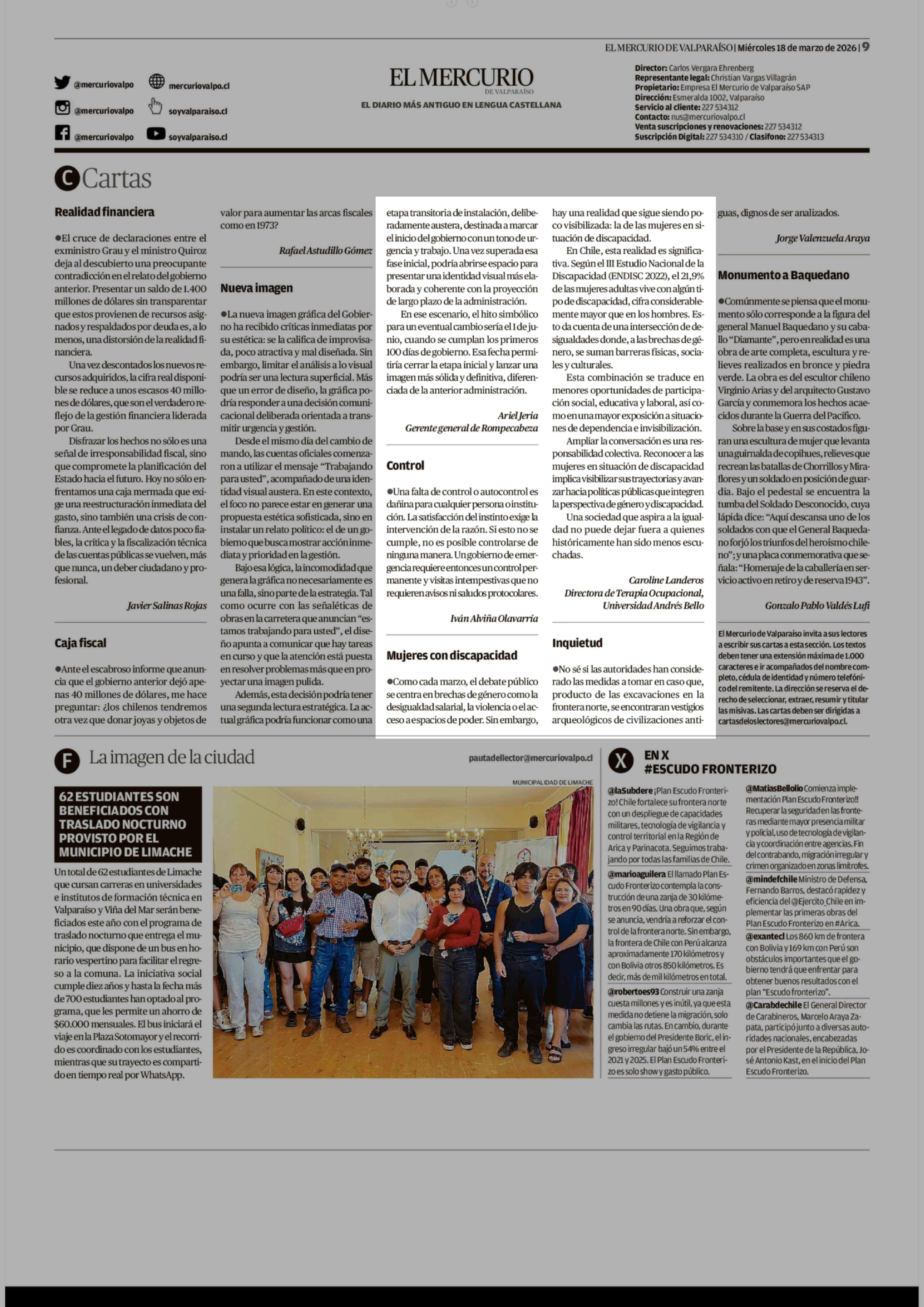 Cartas: Mujeres con discapacidad 18-03-2026 El Mercurio de Valparaíso |