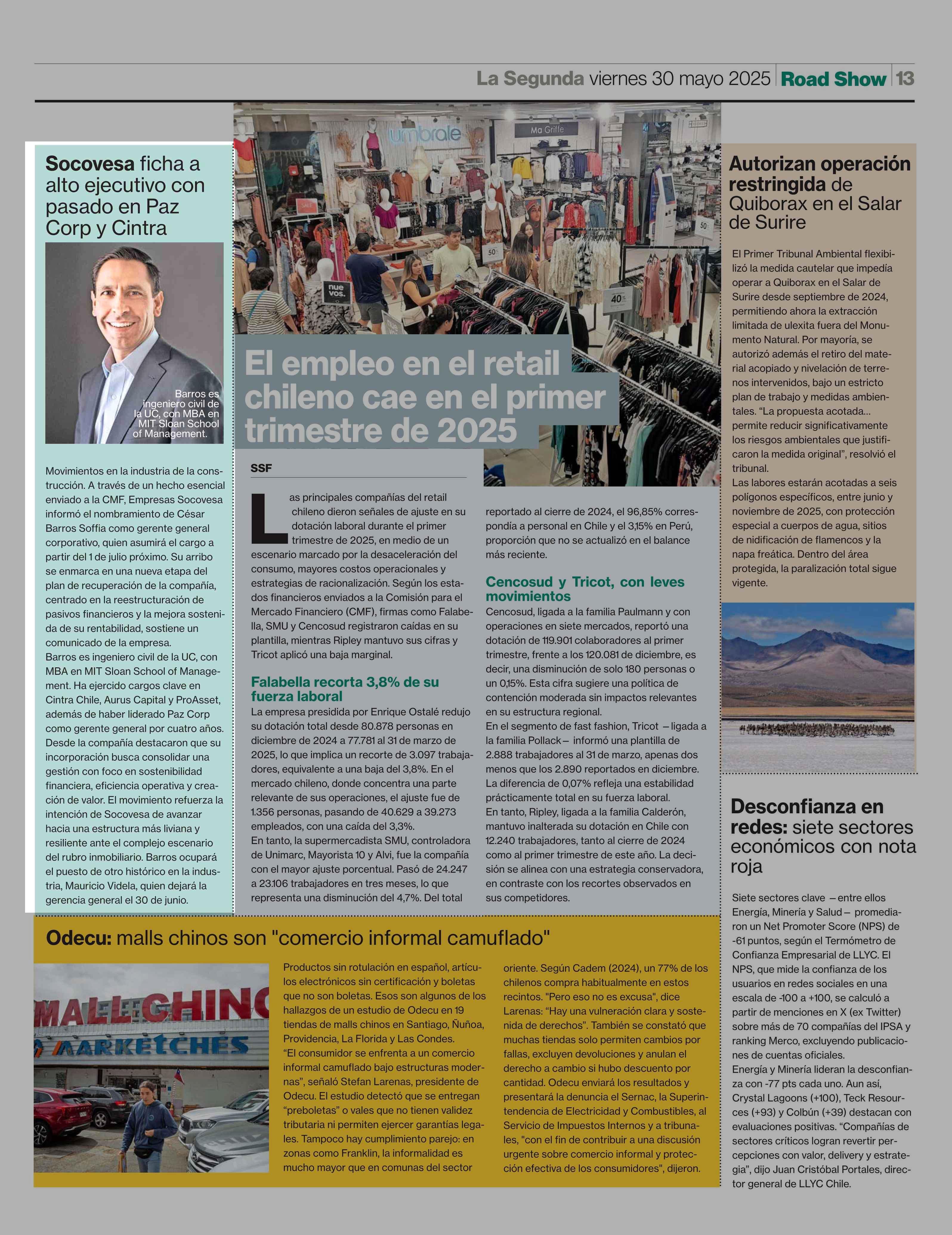 Socovesa ficha a alto ejecutivo con pasado en Paz Corp y Cintra 30-05-2025 La Segunda |