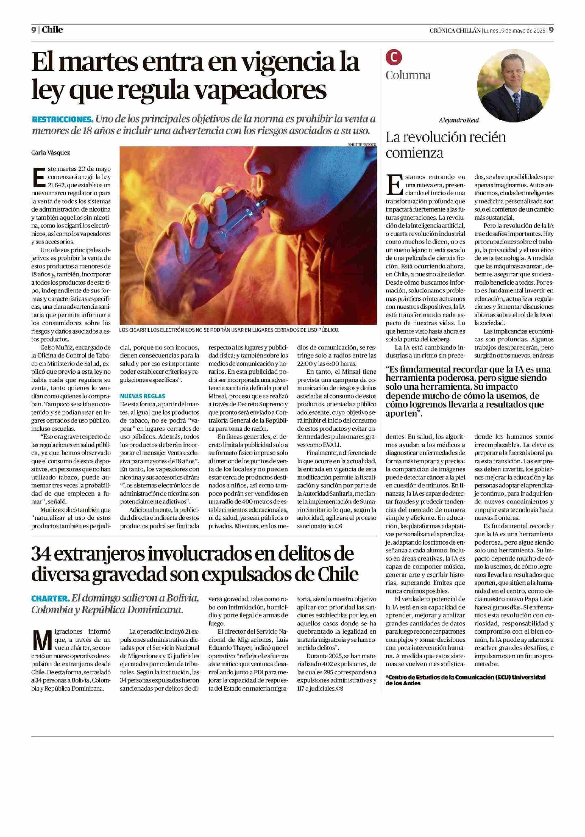 Columnas de Opinión: La revolución recién comienza 19-05-2025 Crónica de Chillán |