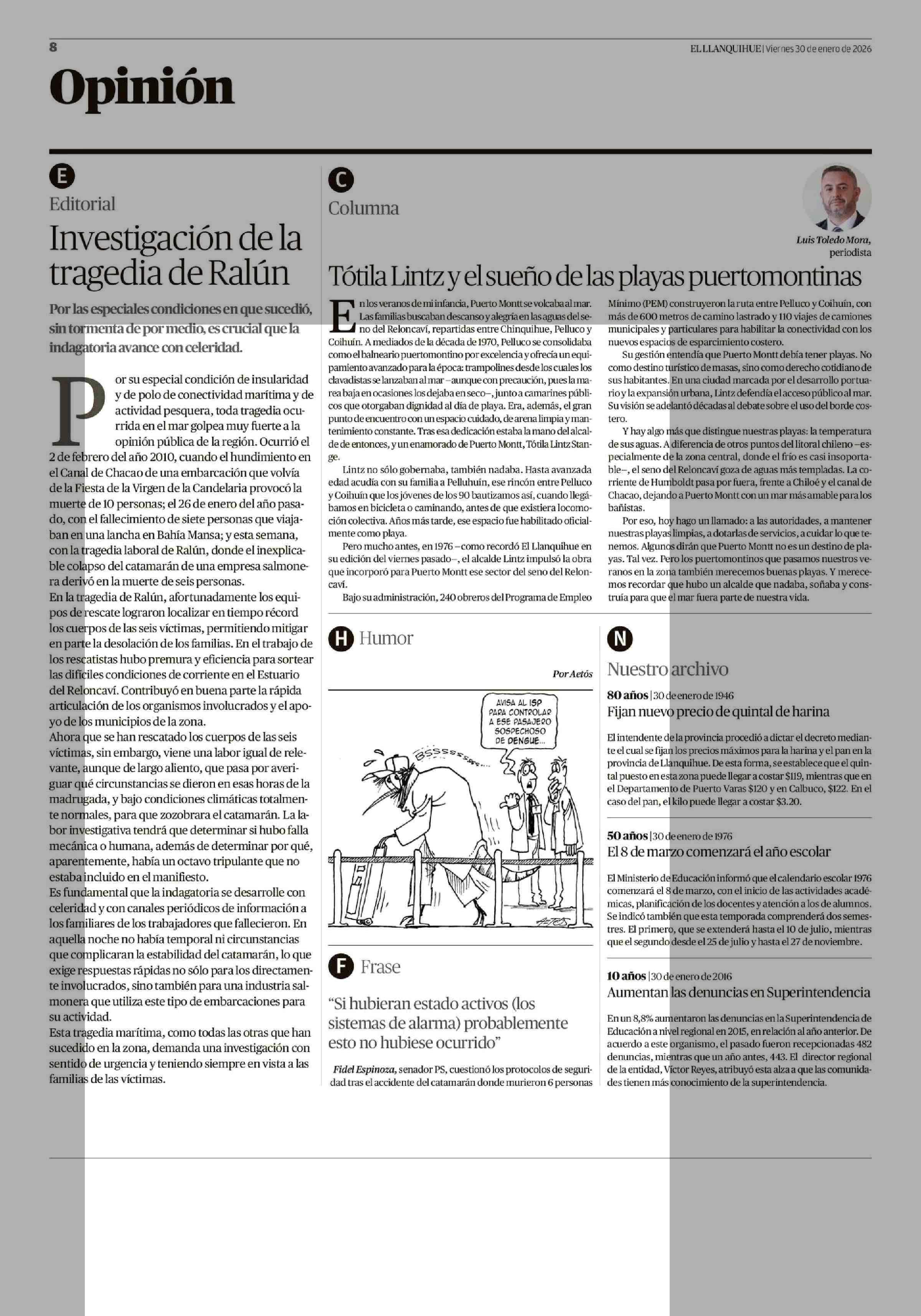 Fecha: 30-01-2026 Sector: Editorial Región: Región de Los Lagos