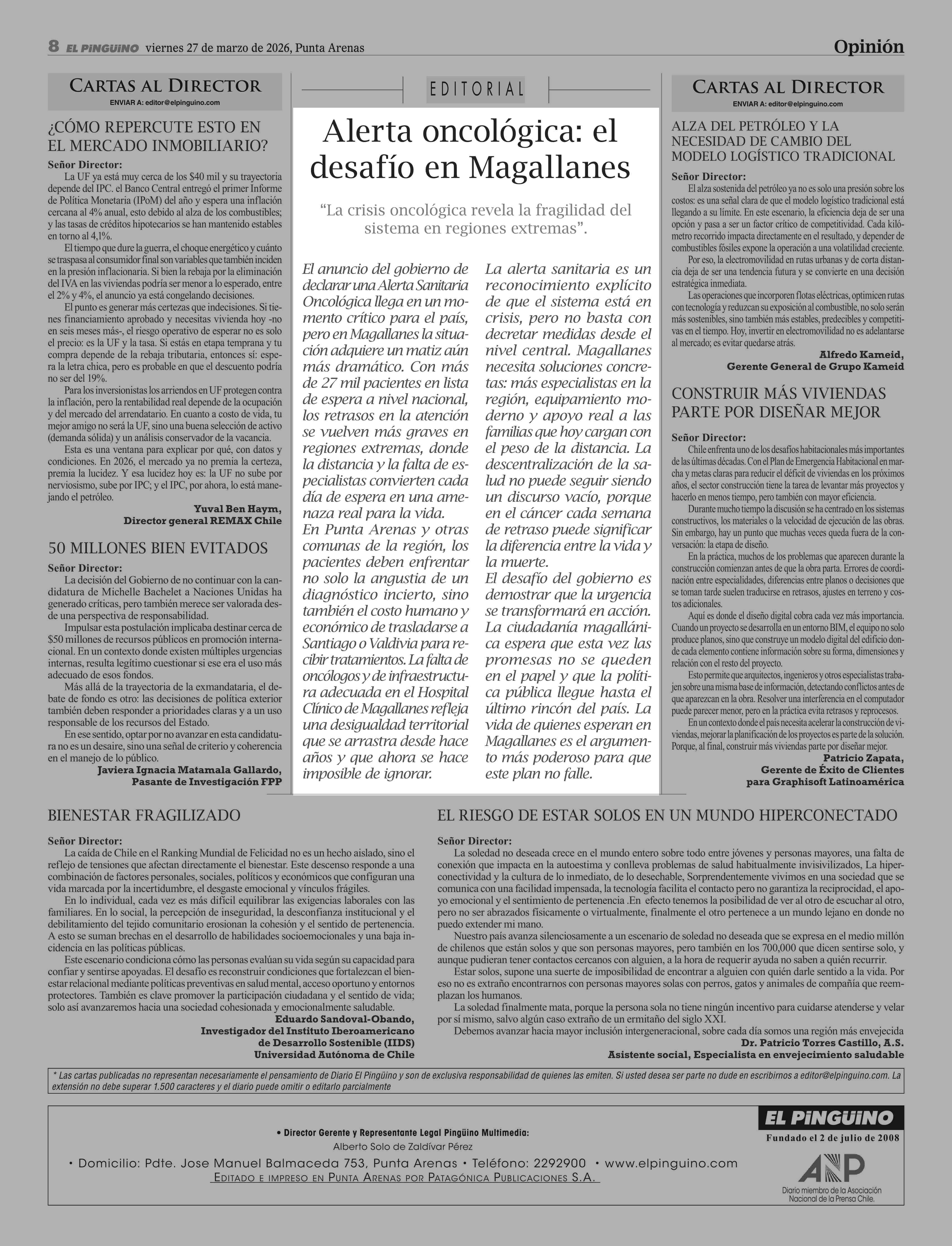 Fecha: 27-03-2026 Sector: Editorial Región: Región de Magallanes y de la Antártica Chilena