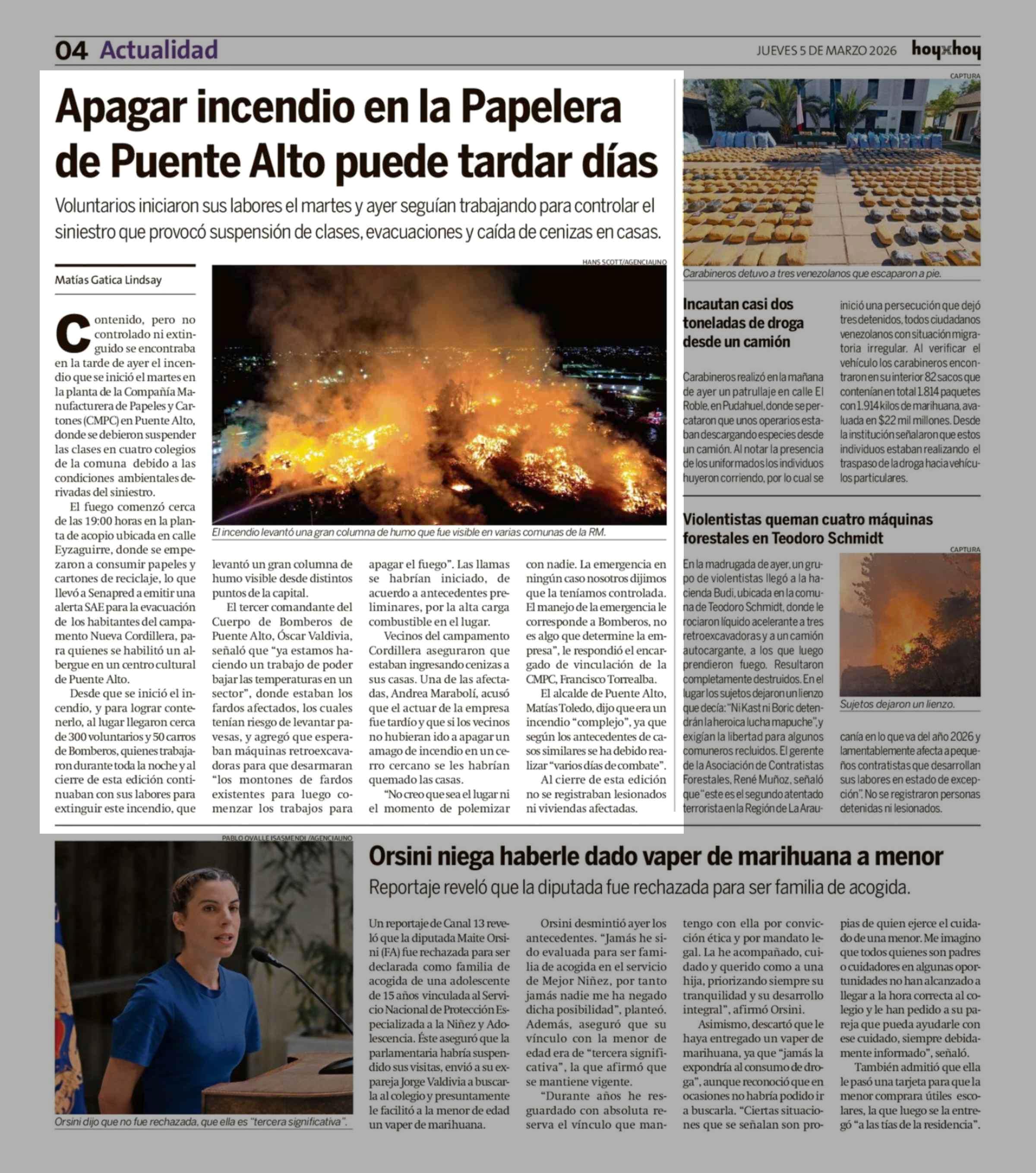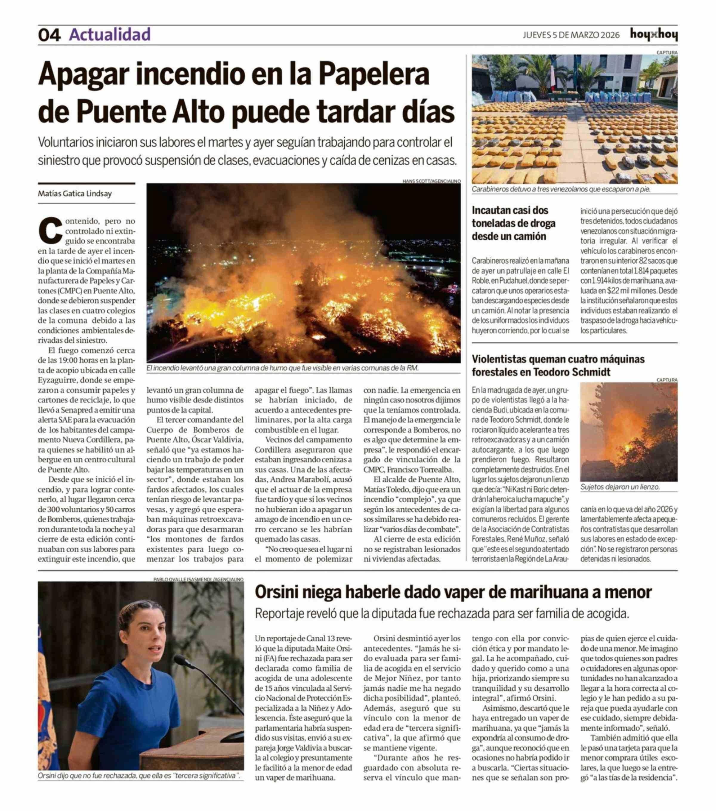 Título: Apagar incendio en la Papelera de Puente Alto puede tardar días