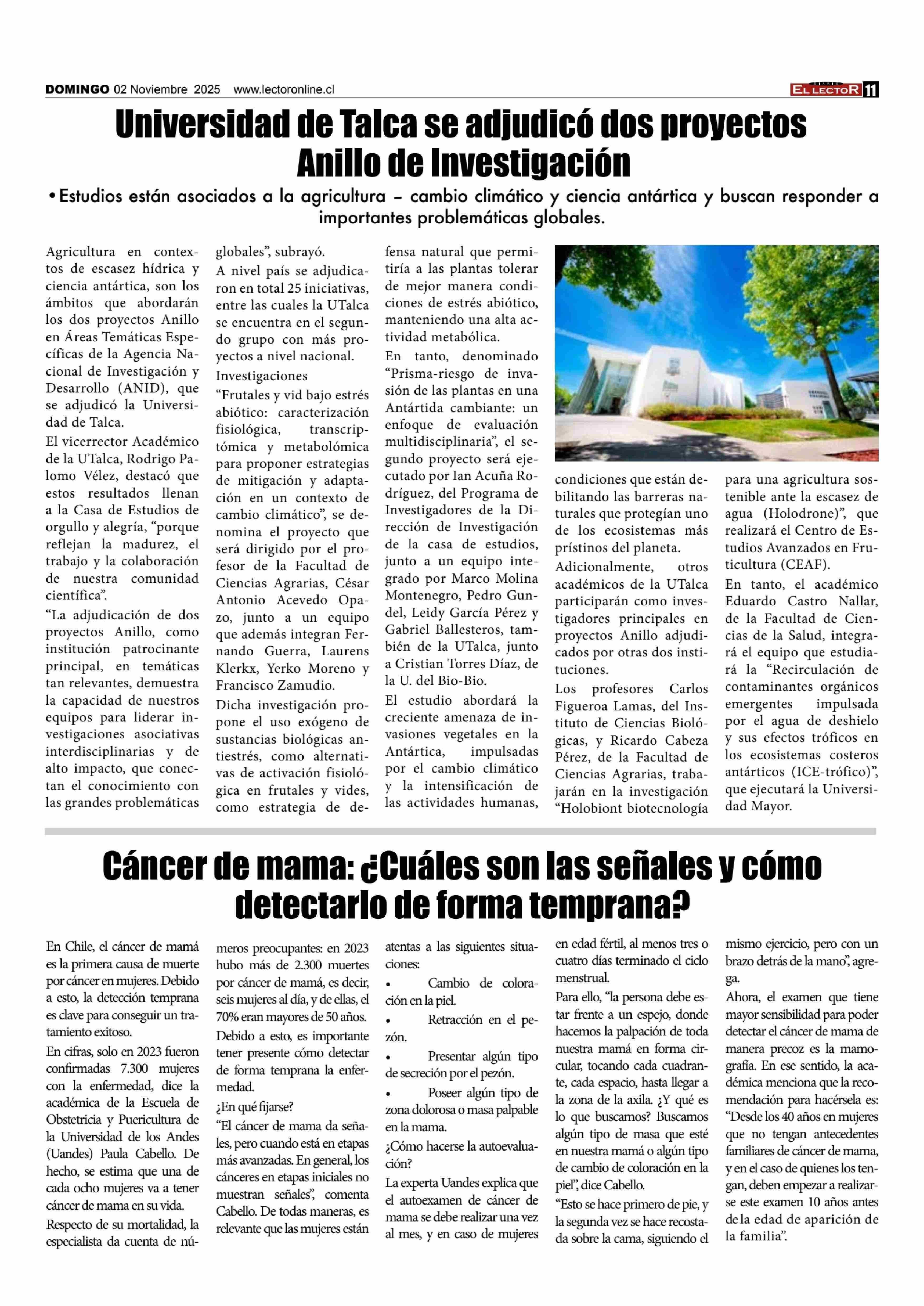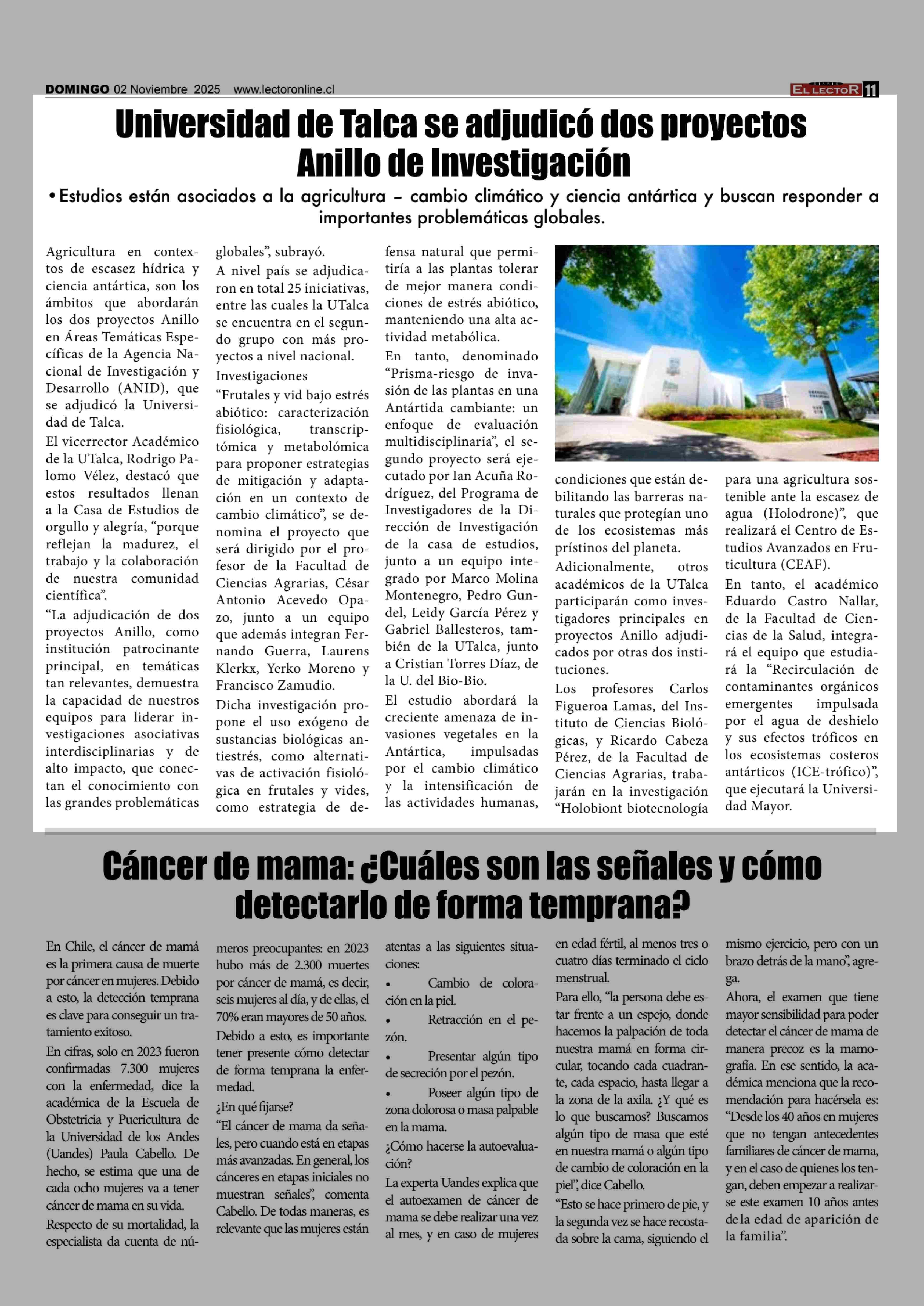 Universidad de Talca se adjudicó dos proyectos Anillo de Investigación 02-11-2025 El Lector  |