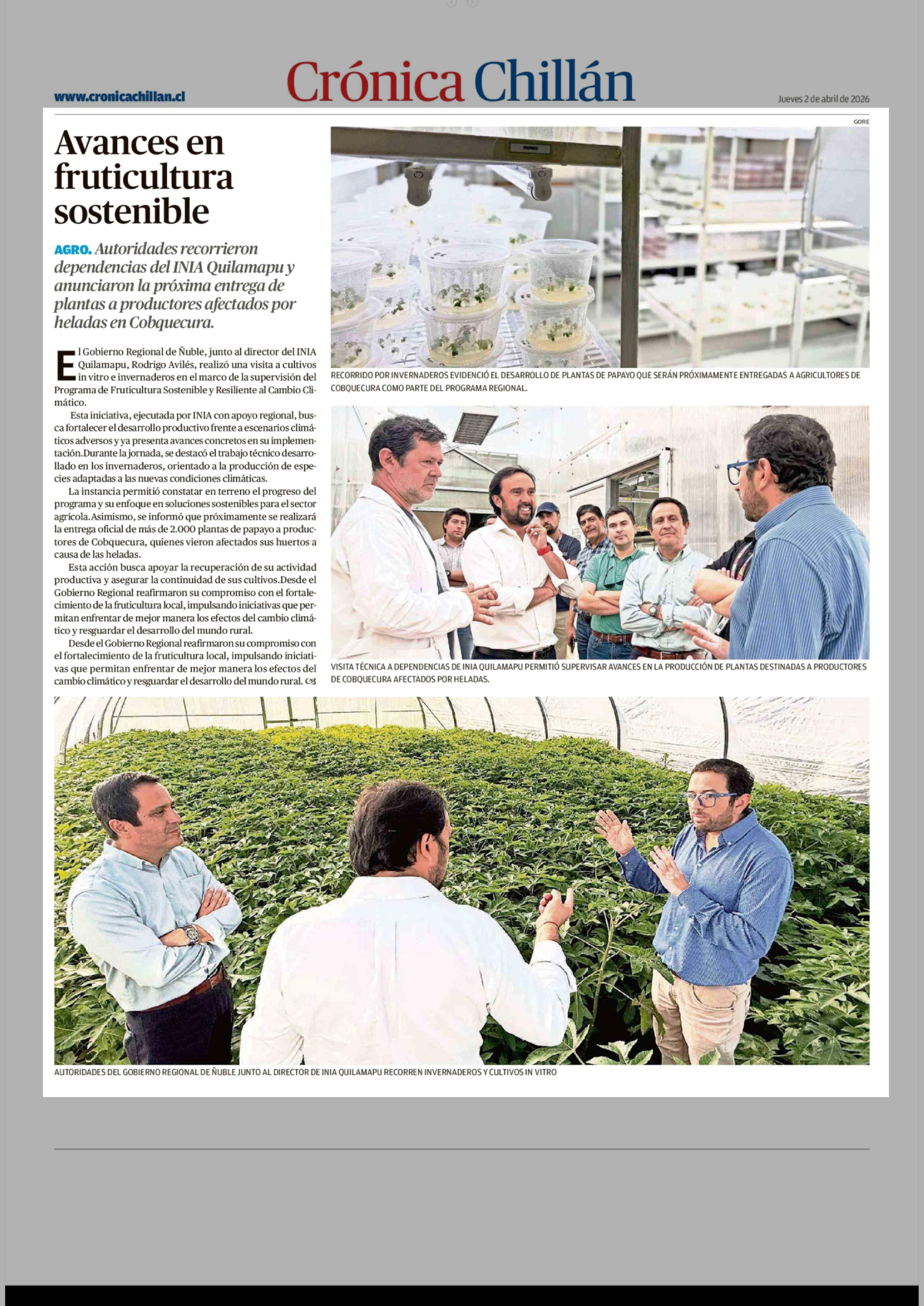 Avances en fruticultura sostenible 02-04-2026 Crónica de Chillán |