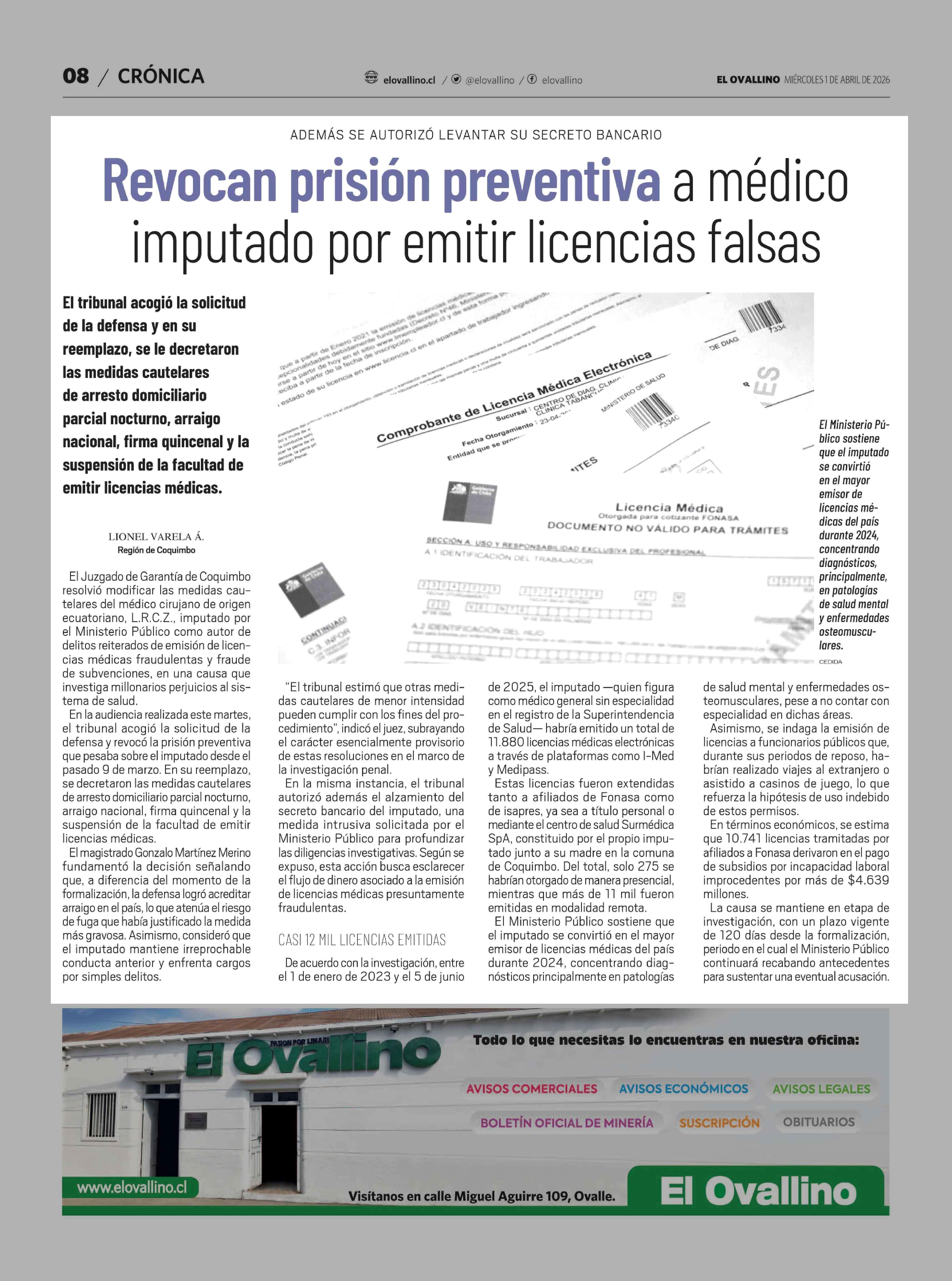 Fuente: El Ovallino (El Ovallino) Página(s): 8