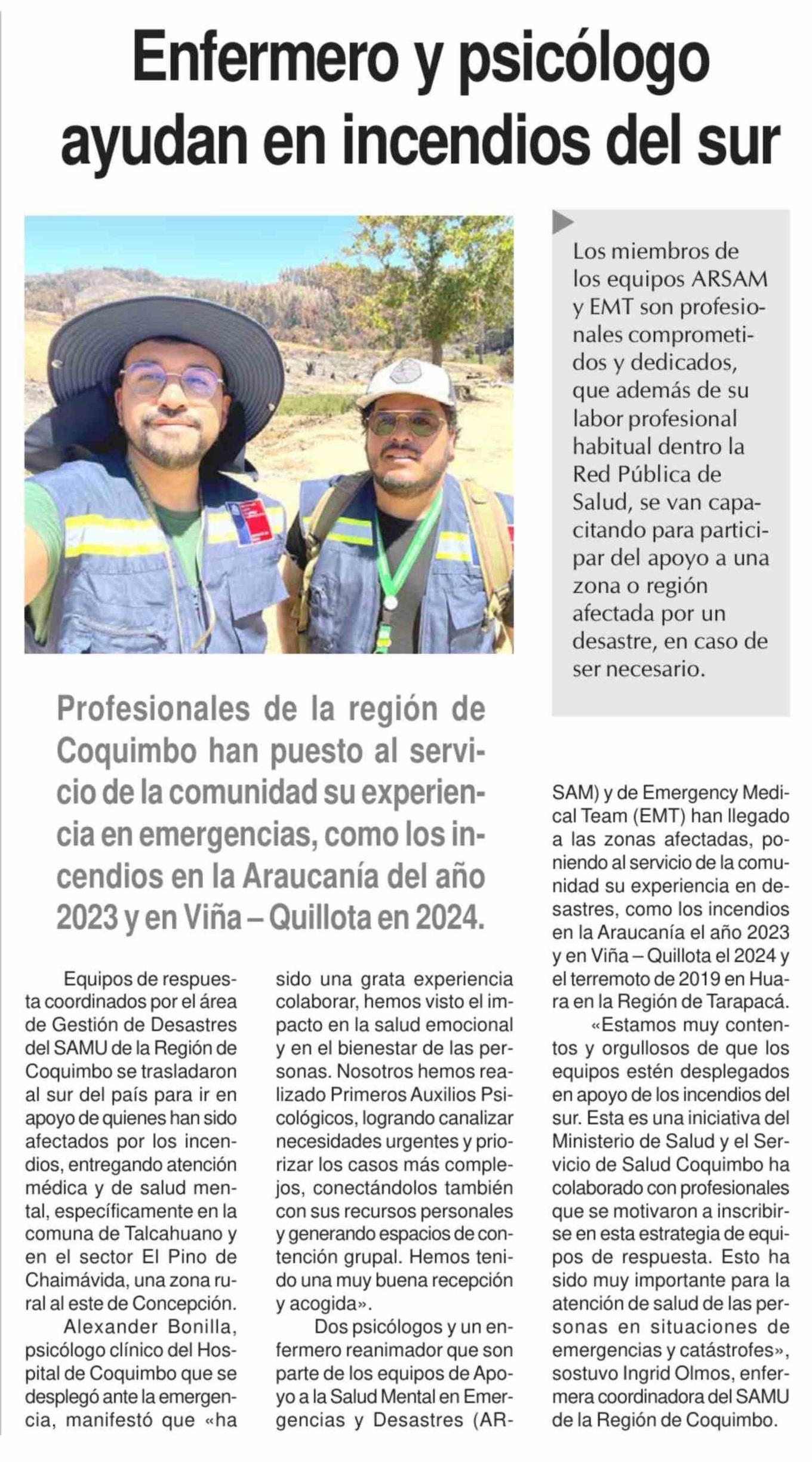 Título: Enfermero y psicólogo ayudan en incendios del sur