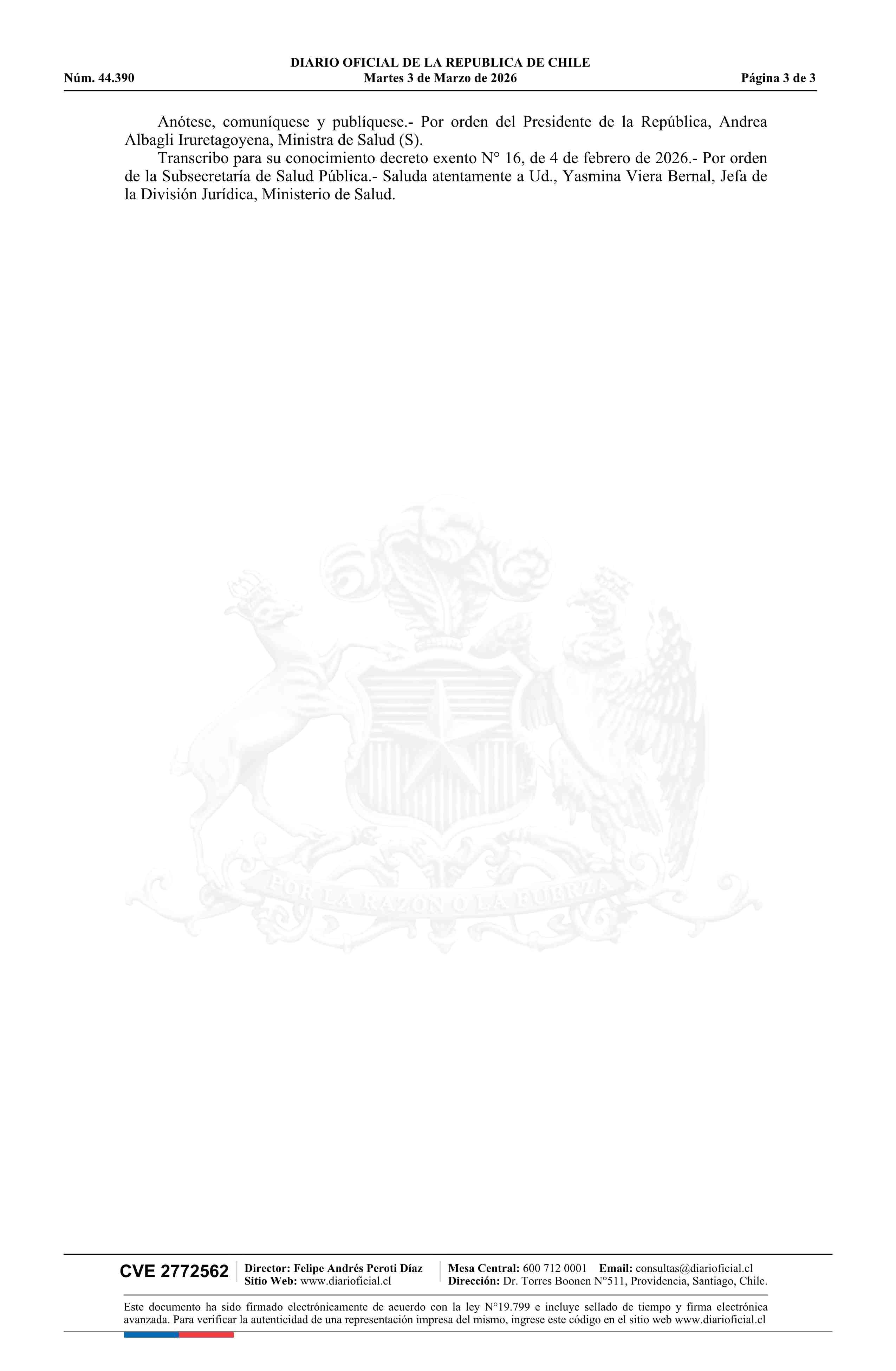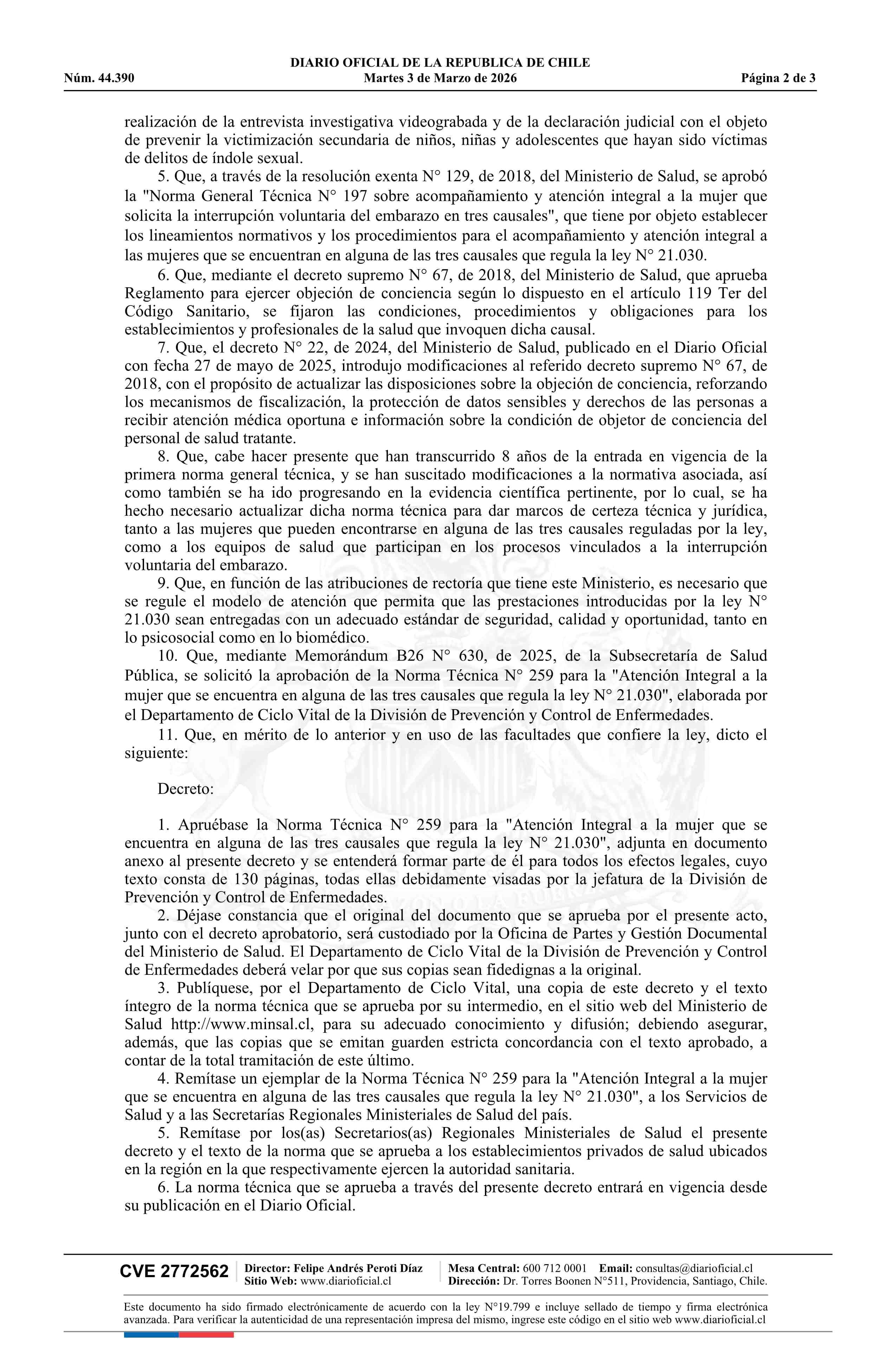 Título: Decreto exento número 16, de 2026.- Aprueba norma técnica N° 259 para la atención integral a la mujer que se encuentra en alguna de las tres causales que regula la ley N° 21.030 y deja sin efecto resolución N° 129 exenta, de 2018