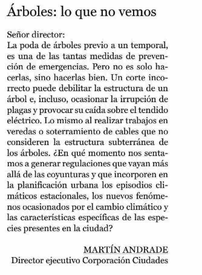 CARTAS: Árboles: lo que no vemos 19-06-2025 La Prensa de Curicó |
