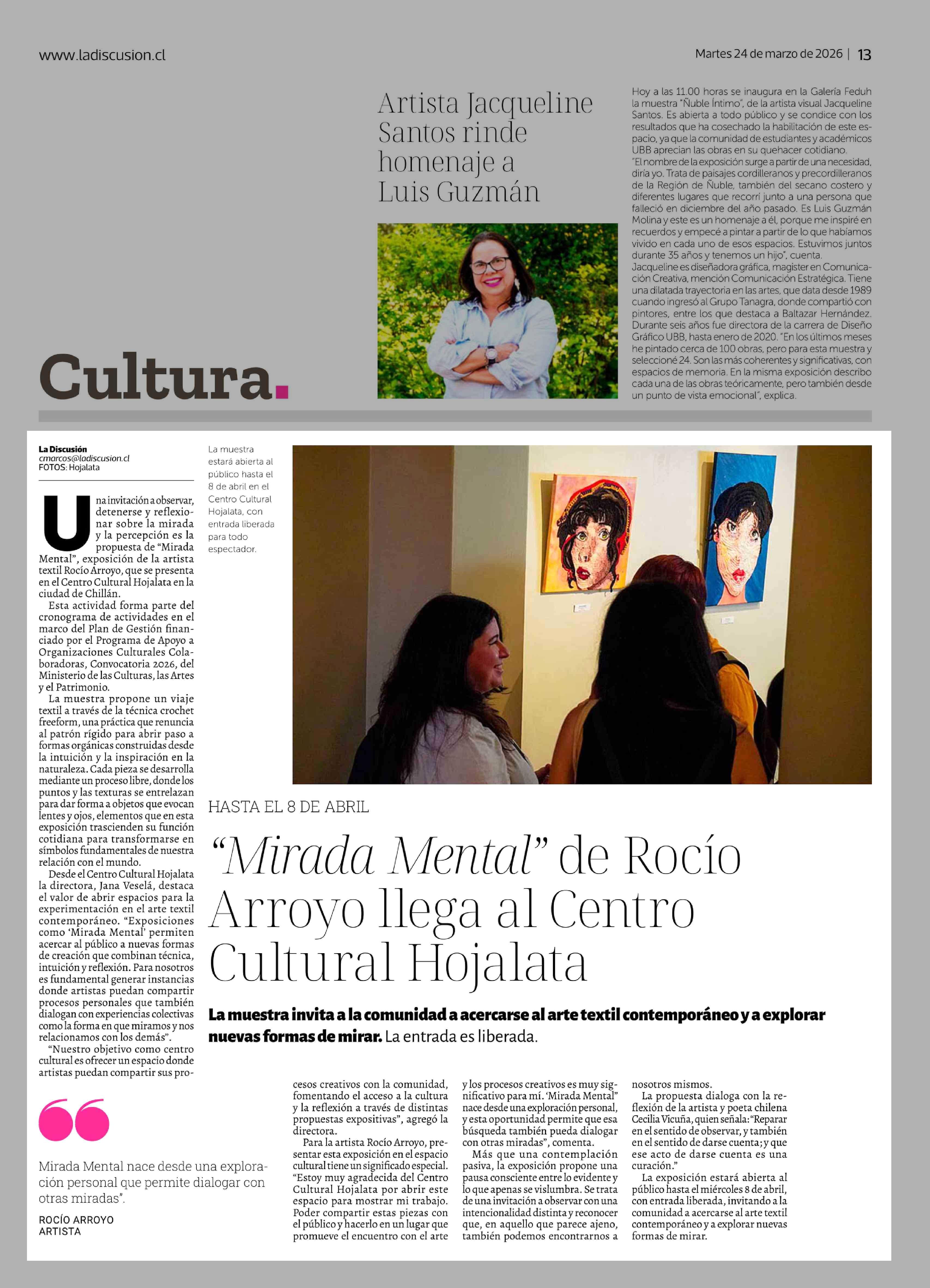 "Mirada Mental" de Rocío Arroyo llega al Centro Cultural Hojalata 24-03-2026 La Discusión |