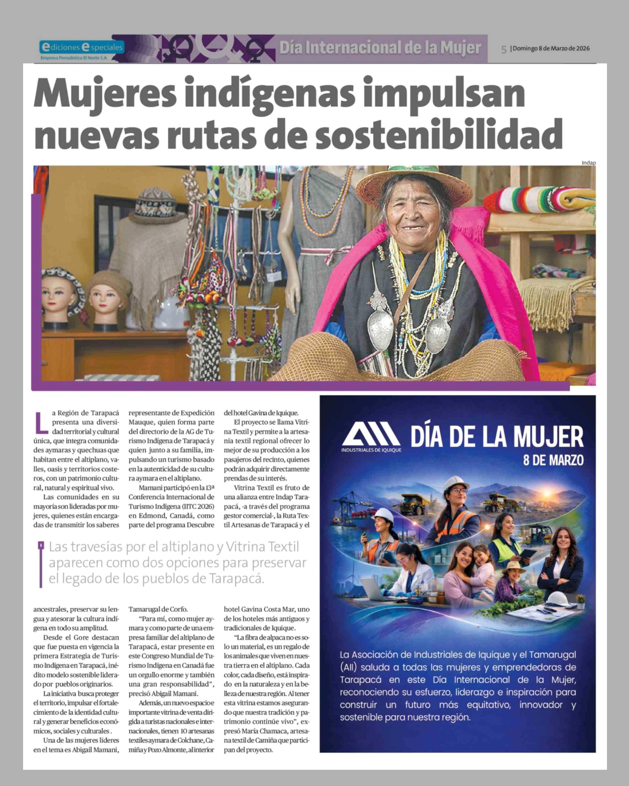 Mujeres indígenas impulsan nuevas rutas de sostenibilidad 08-03-2026 La Estrella de Iquique |