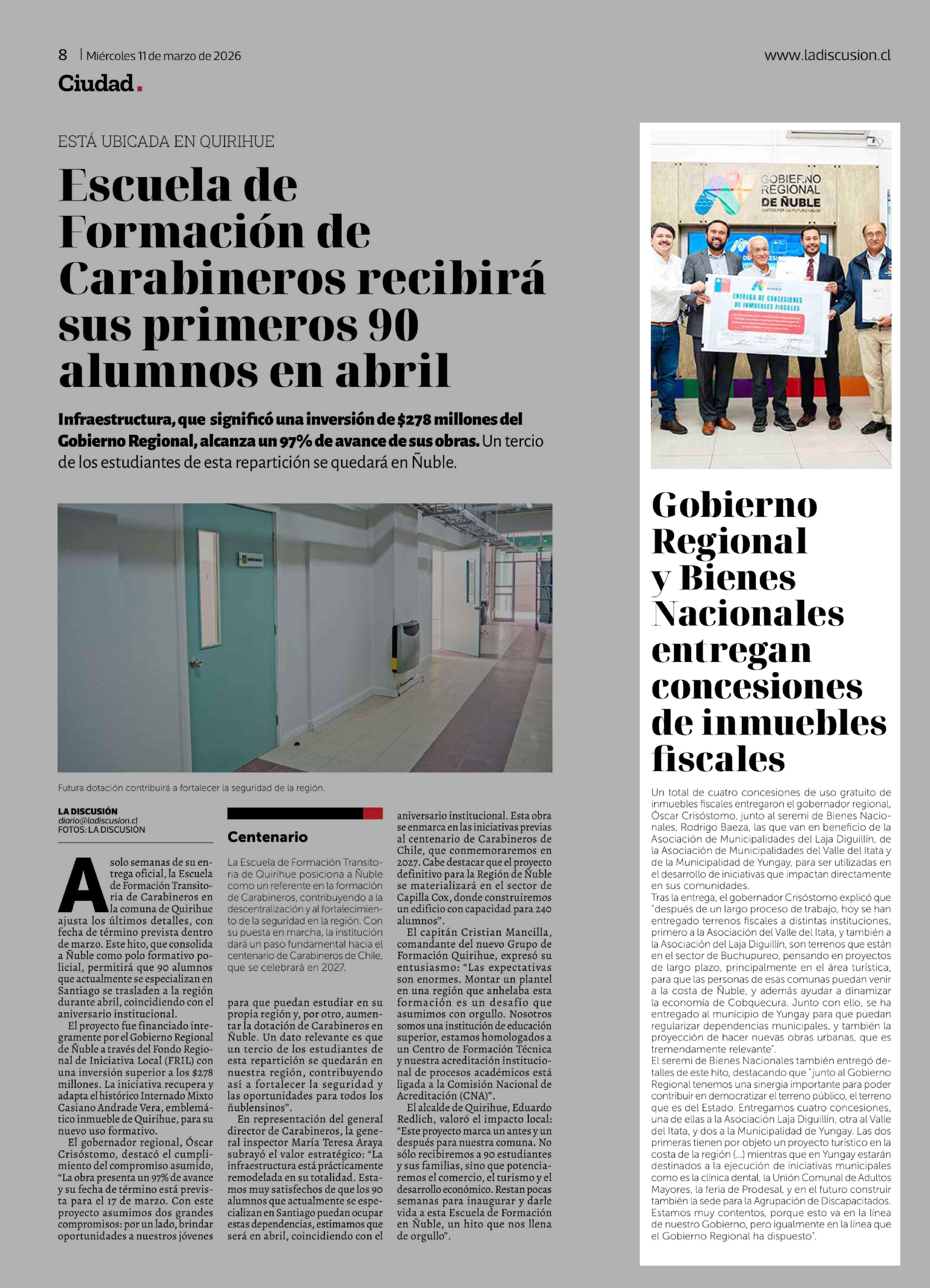 | Fecha: | 11-03-2026 | Sector: | Noticia general | Región: | Región del Ñuble |
