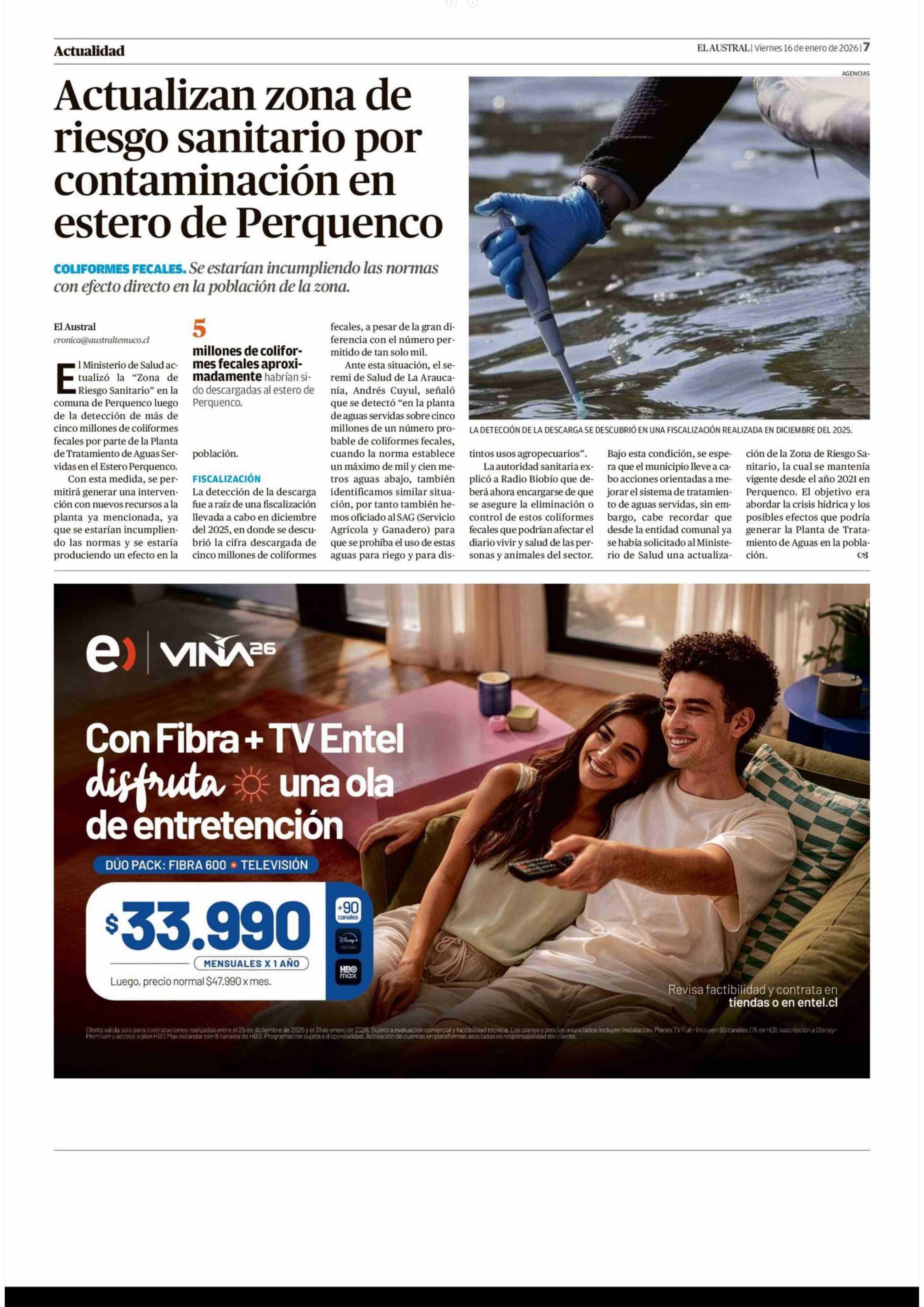 Actualizan zona de riesgo sanitario por contaminación en estero de Perquenco 16-01-2026 El Austral de la Araucanía |