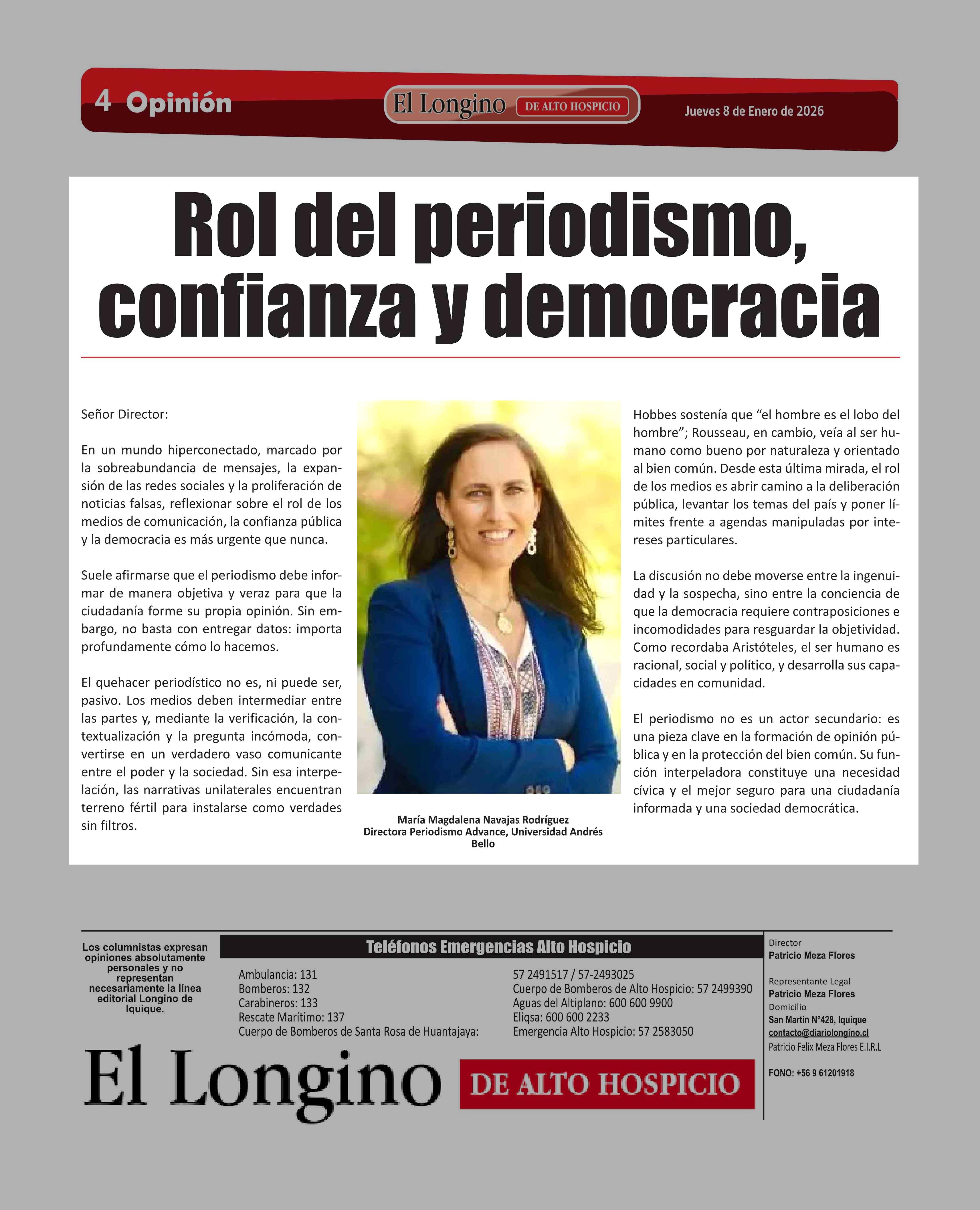 Fecha: 08-01-2026 Sector: Columnas de Opinión Región: Región de Tarapacá