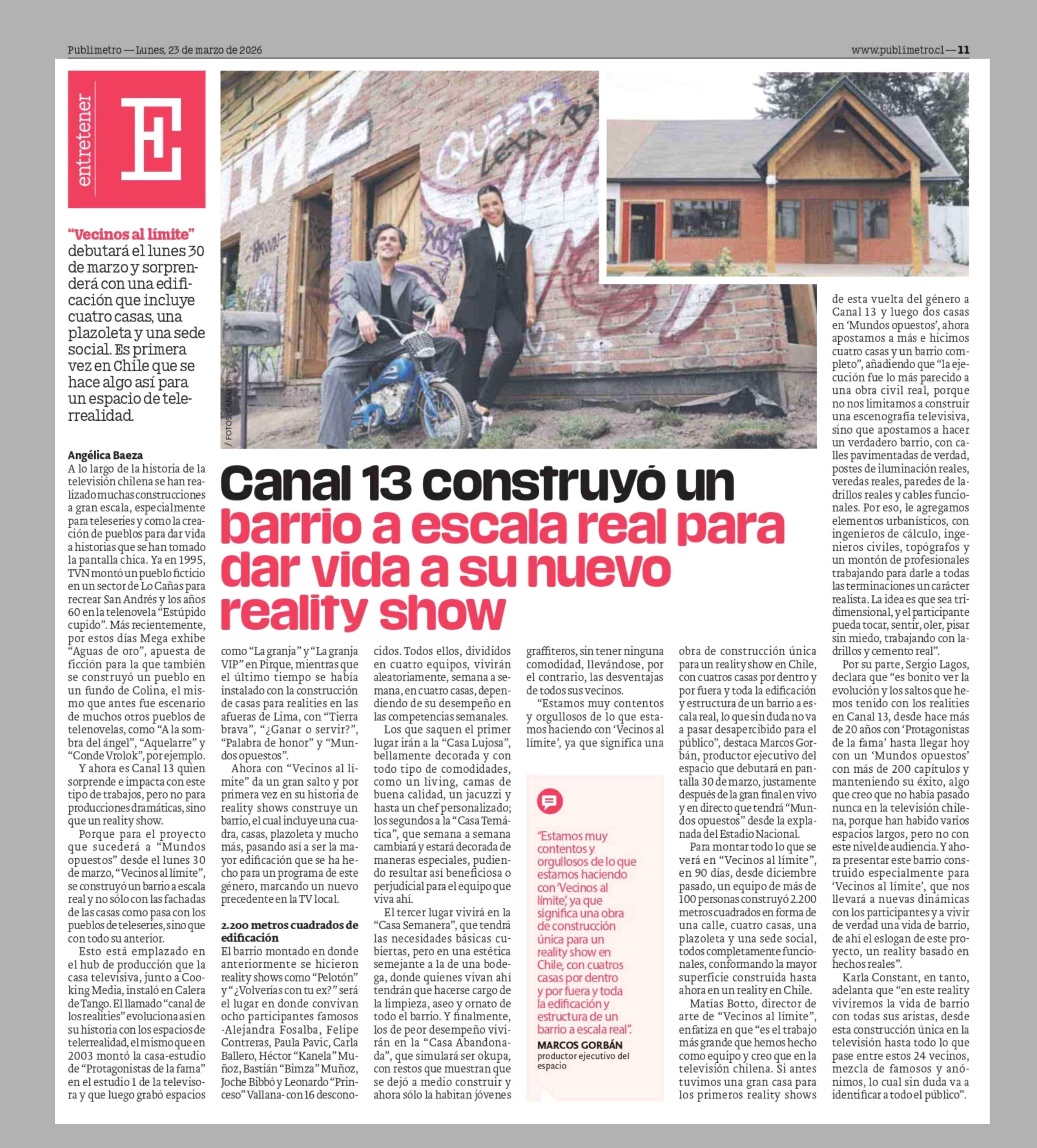 Canal 13 construyo un barrio a escala real para dar vida a su nuevo reality show 23-03-2026 Publimetro |