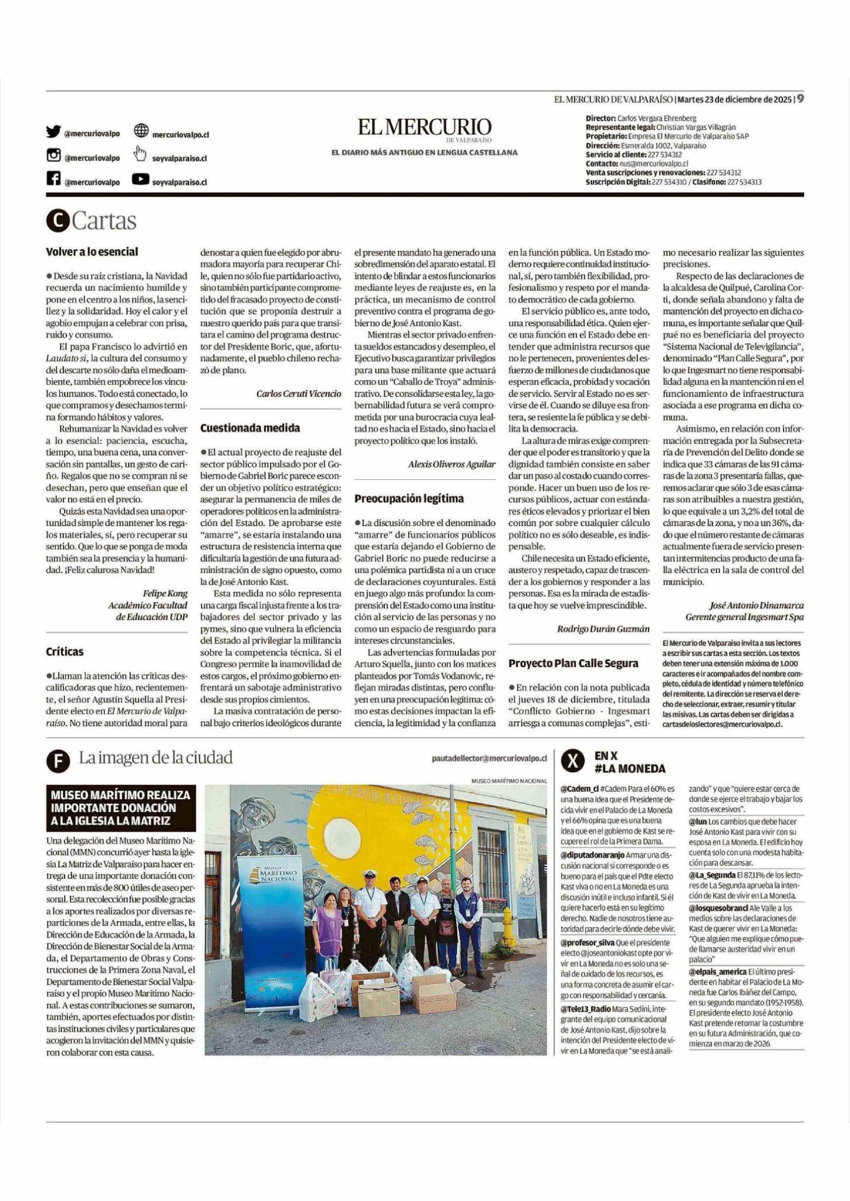 Cartas: Volver a lo esencial 23-12-2025 El Mercurio de Valparaíso |