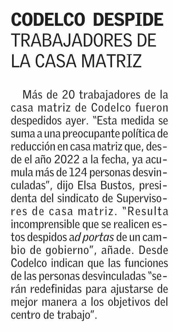 Título: CODELCO DESPIDE TRABAJADORES DE LA CASA MATRIZ