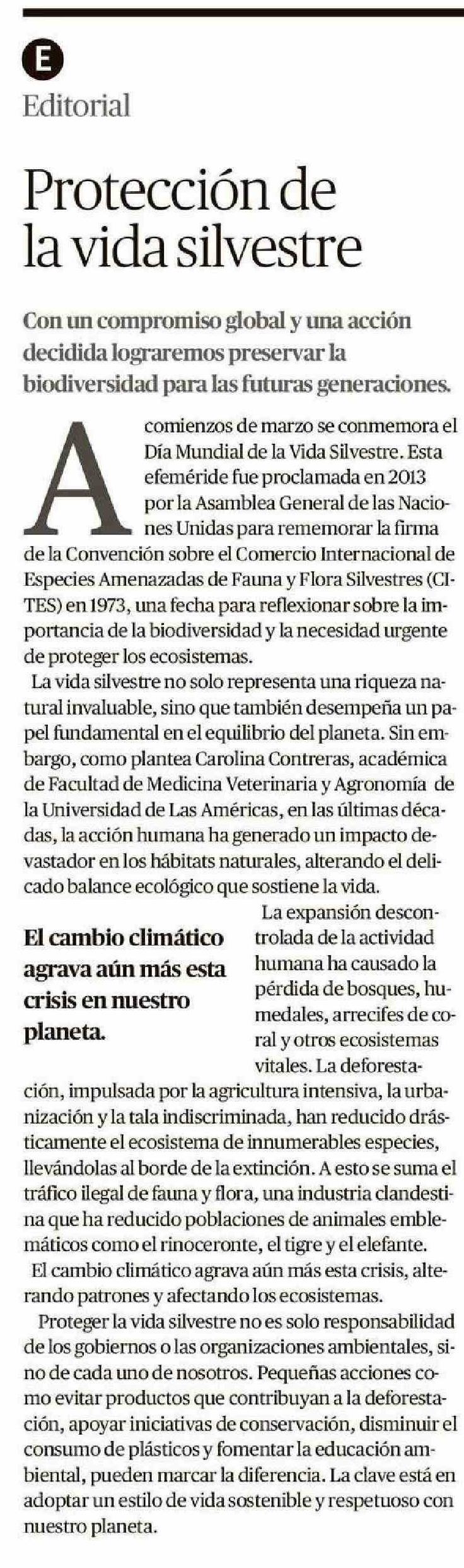 Editorial: Protección de la vida silvestre 16-03-2025 Crónica de Chillán |