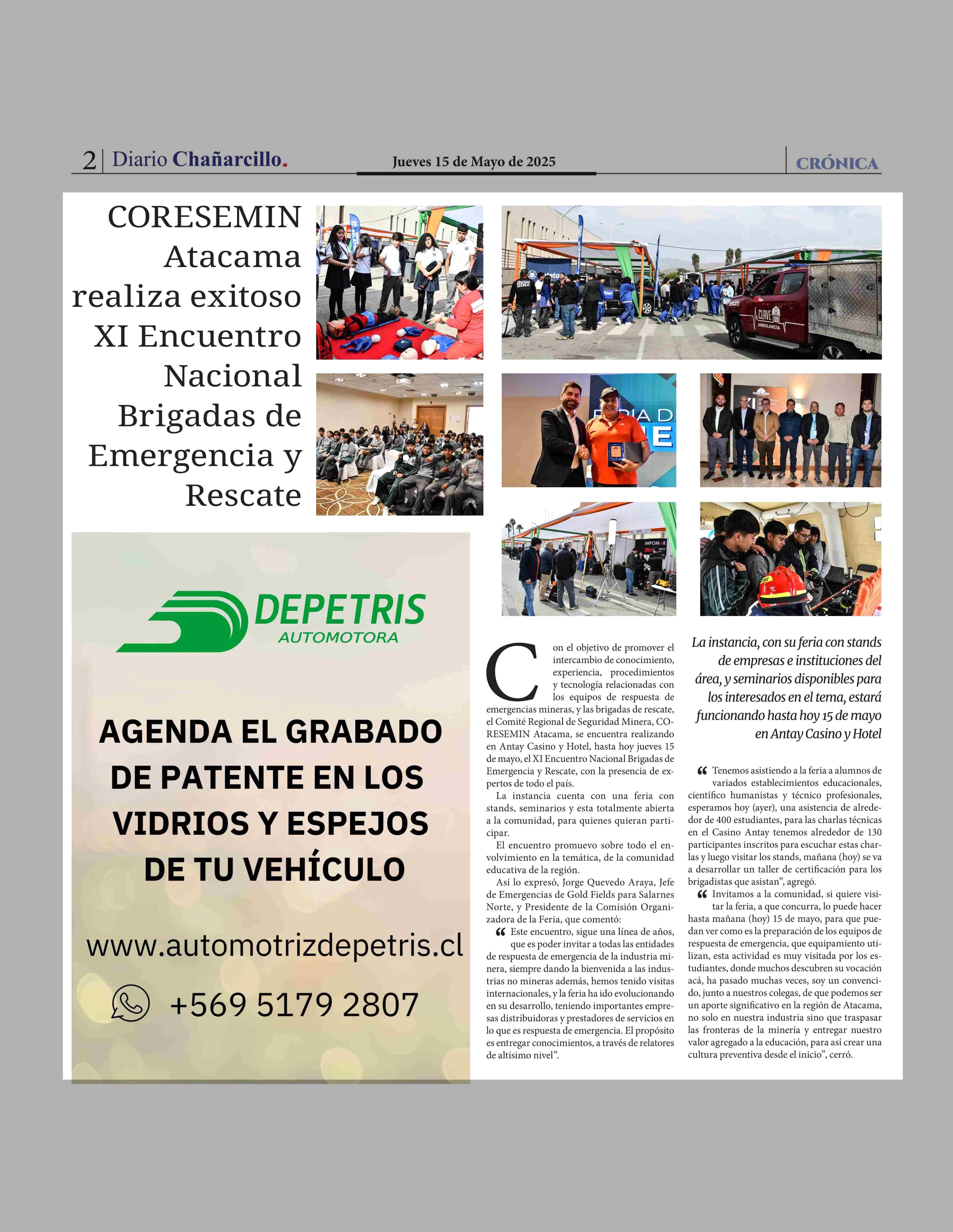 CORESEMIN Atacama realiza exitoso XI Encuentro Nacional Brigadas de Emergencia y Rescate 15-05-2025 Diario Chañarcillo |