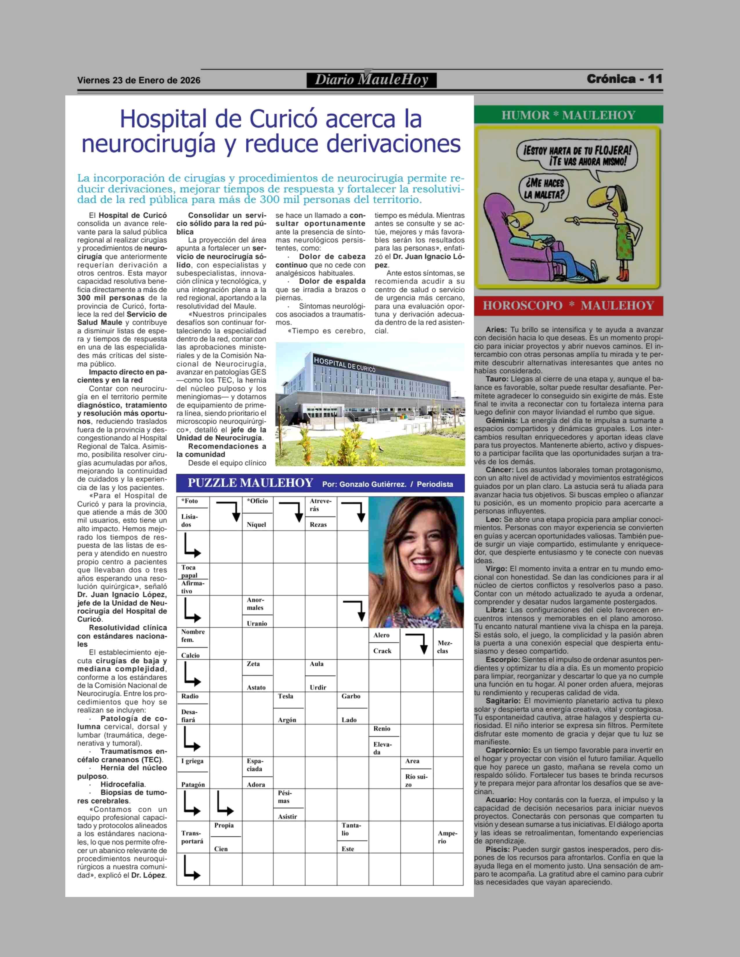Hospital de Curicó acerca la neurocirugía y reduce derivaciones 23-01-2026 Maule Hoy |