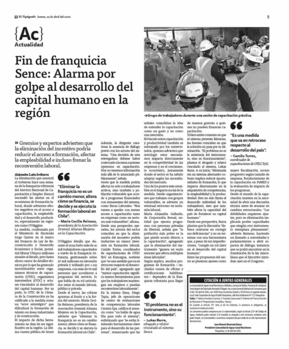 Fin de franquicia Sence: Alarma por golpe al desarrollo del capital humano en la región 23-04-2026 El Tipógrafo |