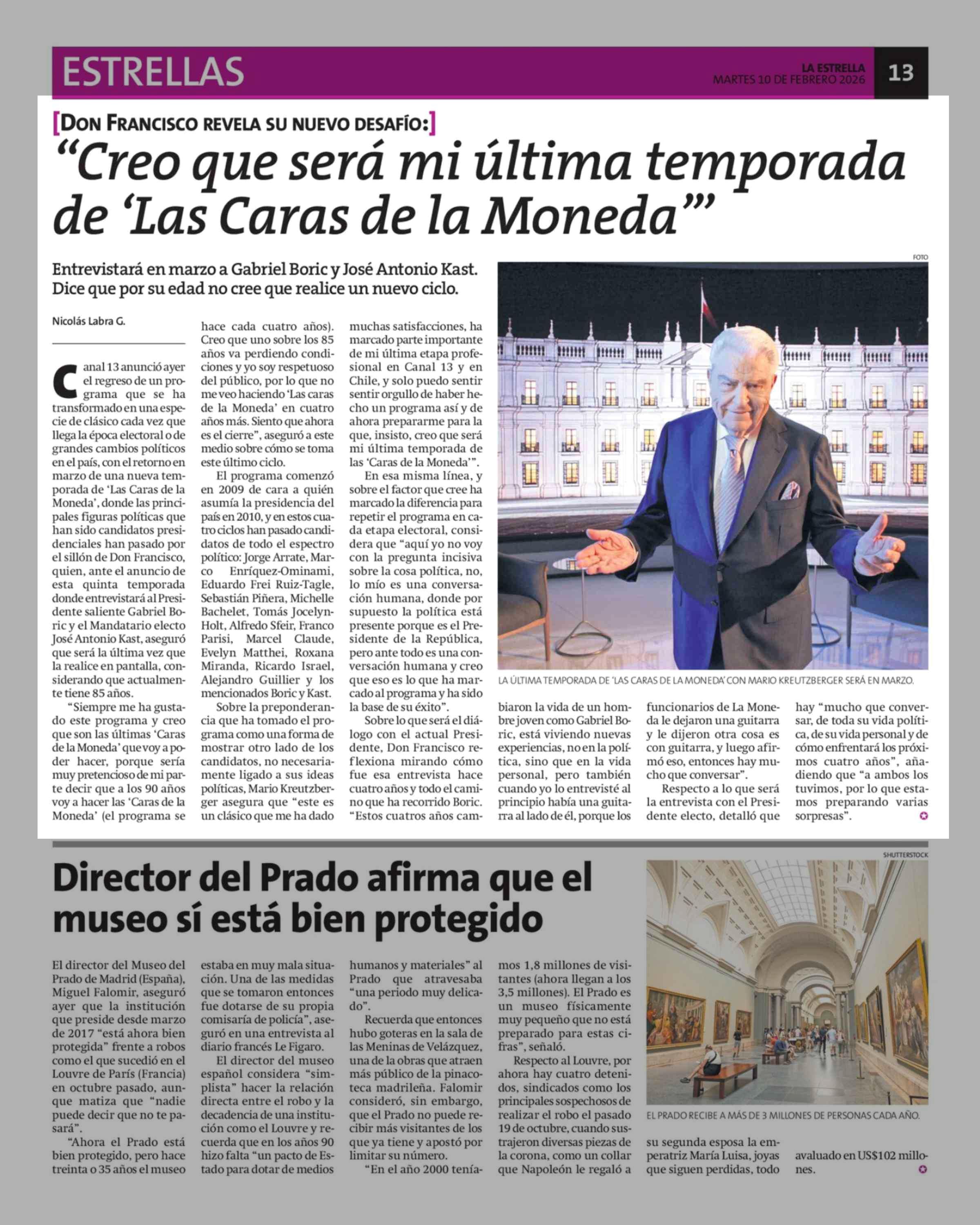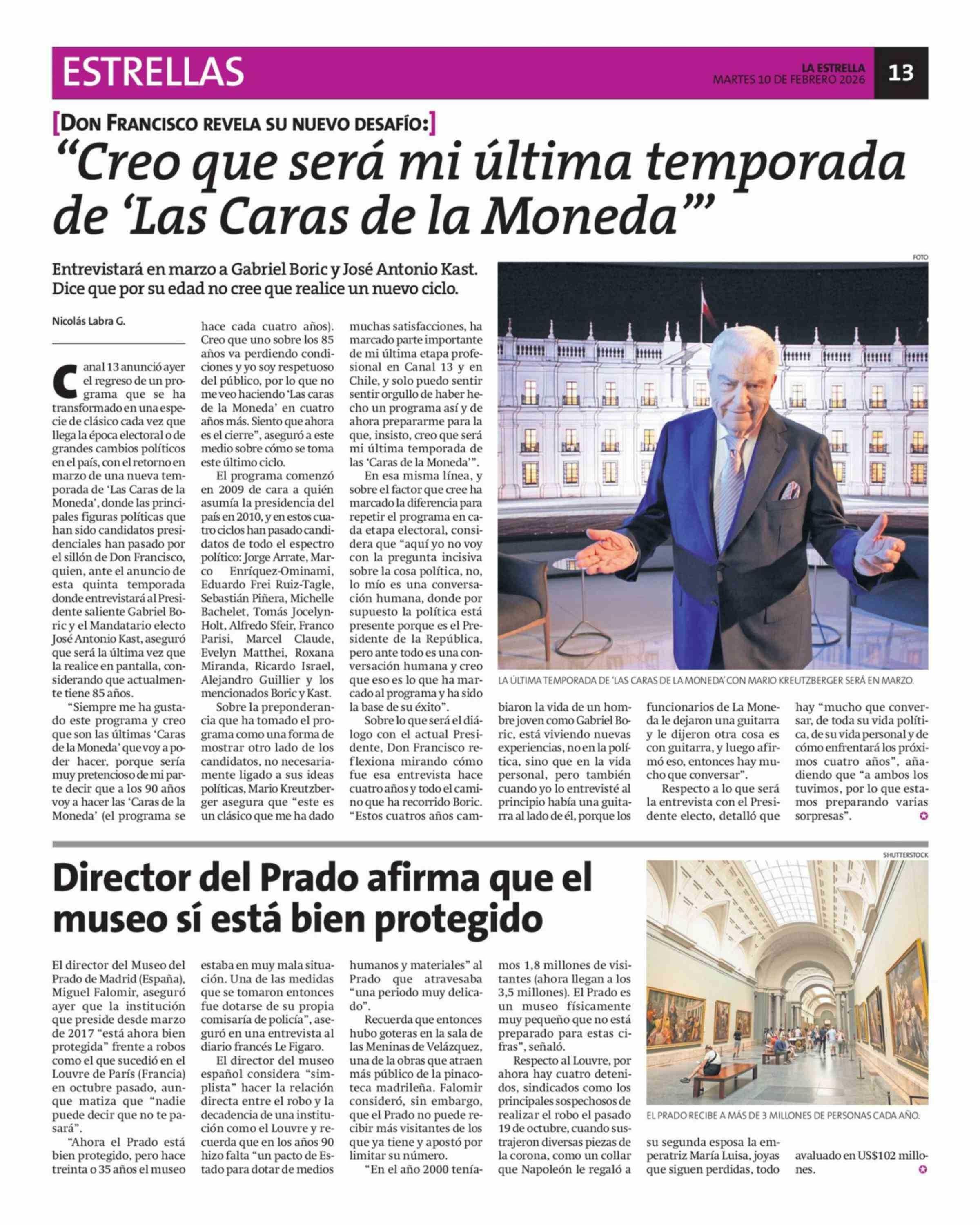 "Creo que será mi última temporada de 'Las Caras de la Moneda" 10-02-2026 La Estrella de Iquique |