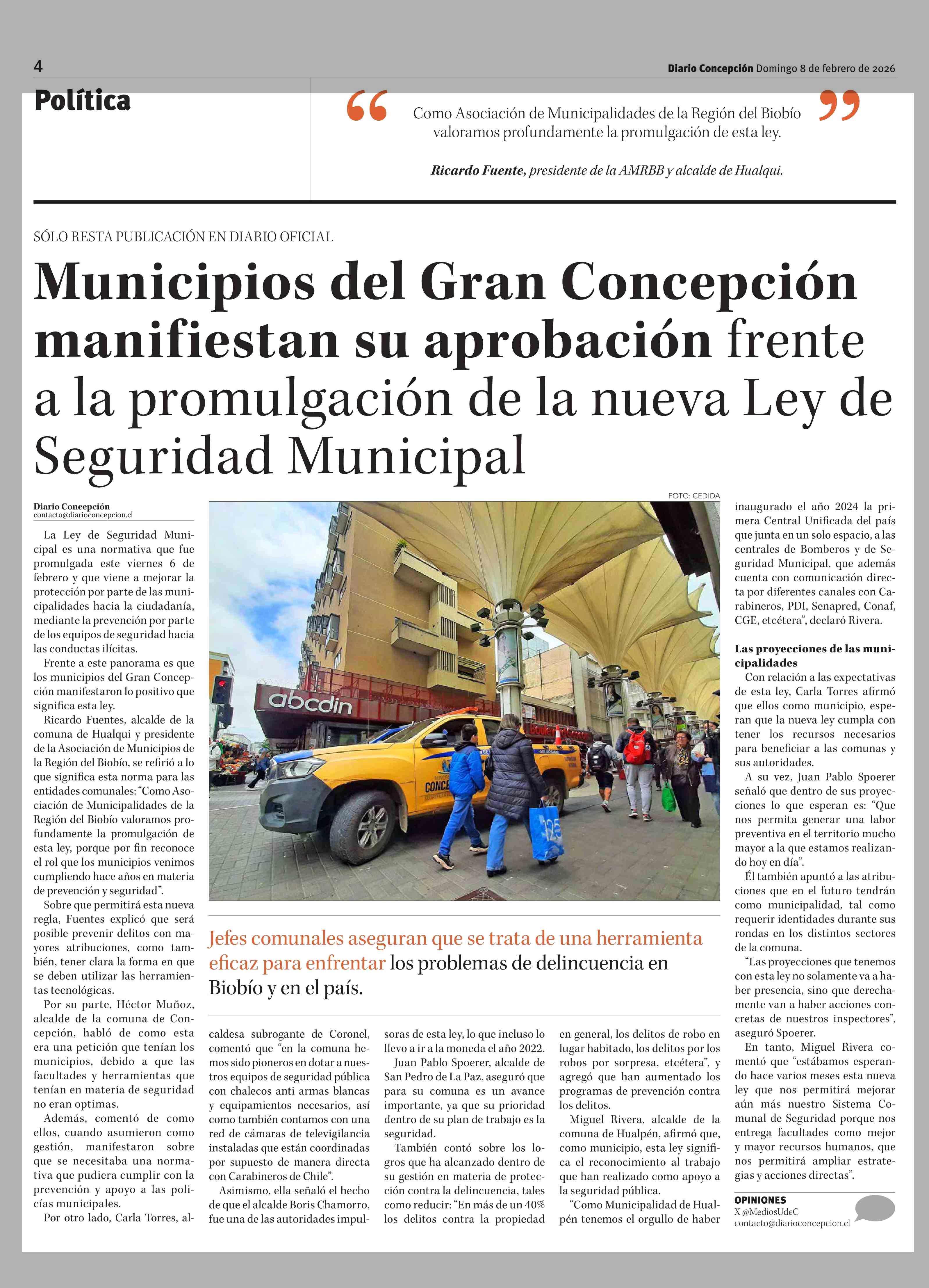 Título: Municipios del Gran Concepción manifiestan su aprobación frente a la promulgación de la nueva Ley de Seguridad Municipal