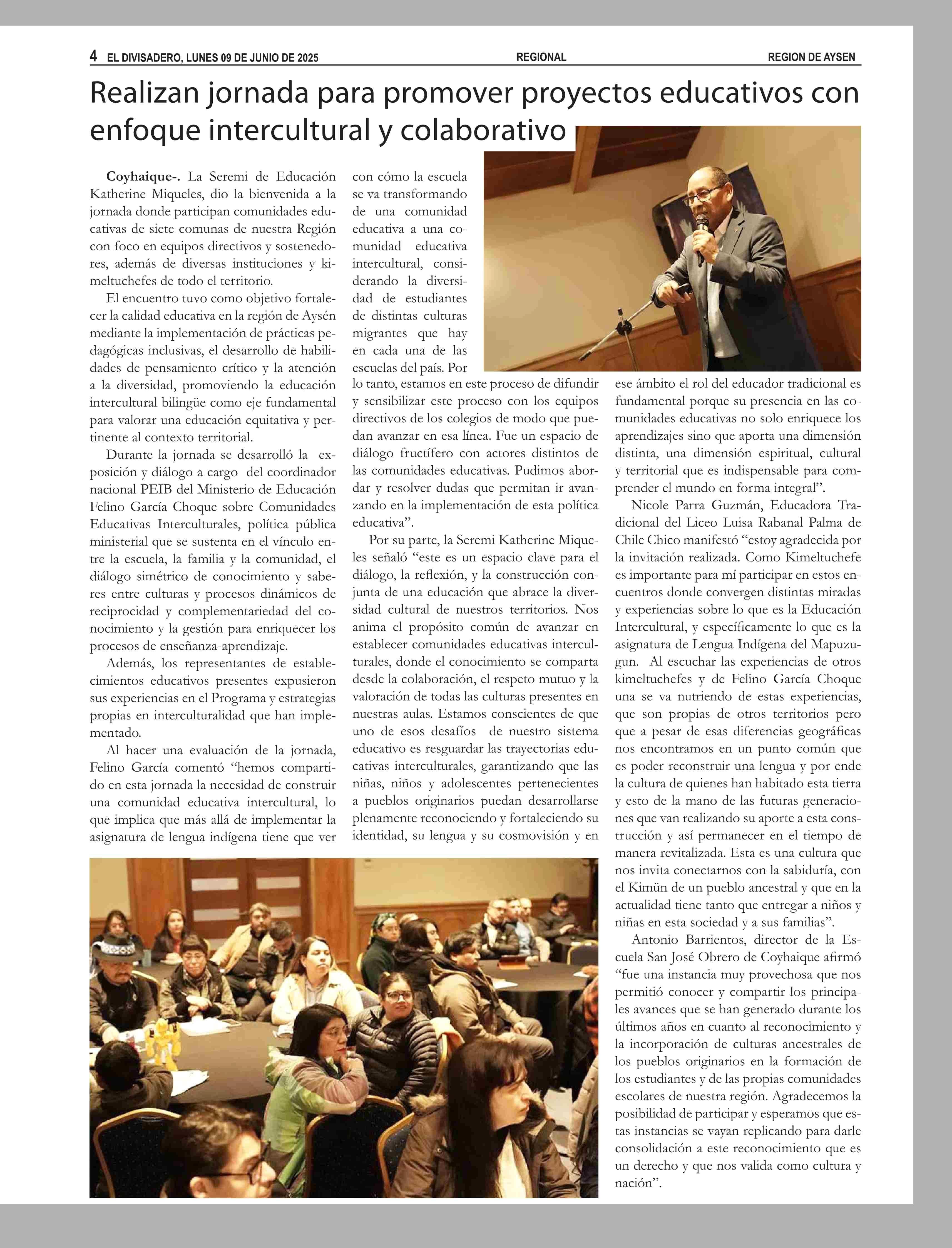 Realizan jornada para promover proyectos educativos con enfoque intercultural y colaborativo 09-06-2025 El Divisadero |