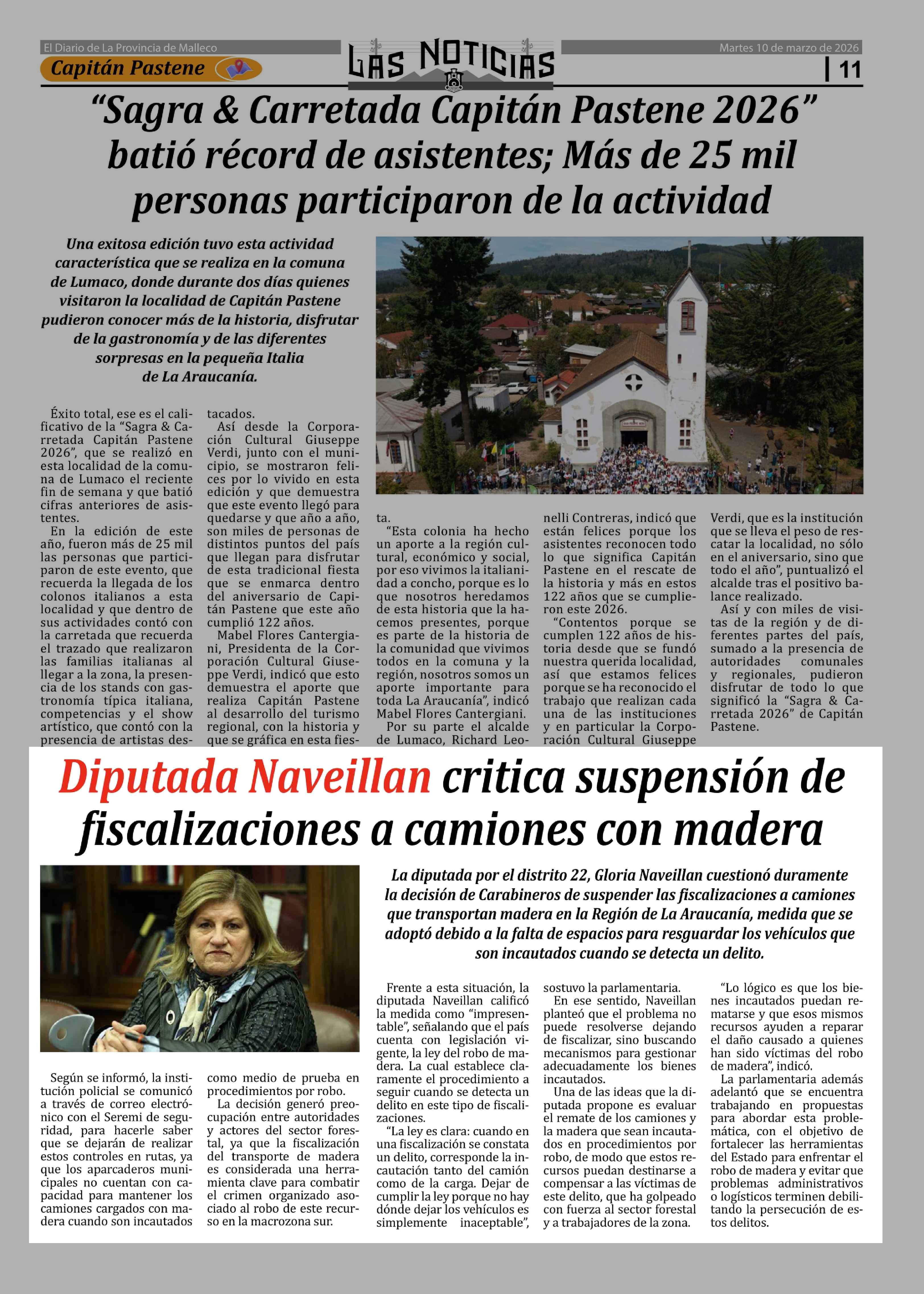 Diputada Naveillan critica suspensión de fiscalizaciones a camiones con madera 10-03-2026 Las Noticias |