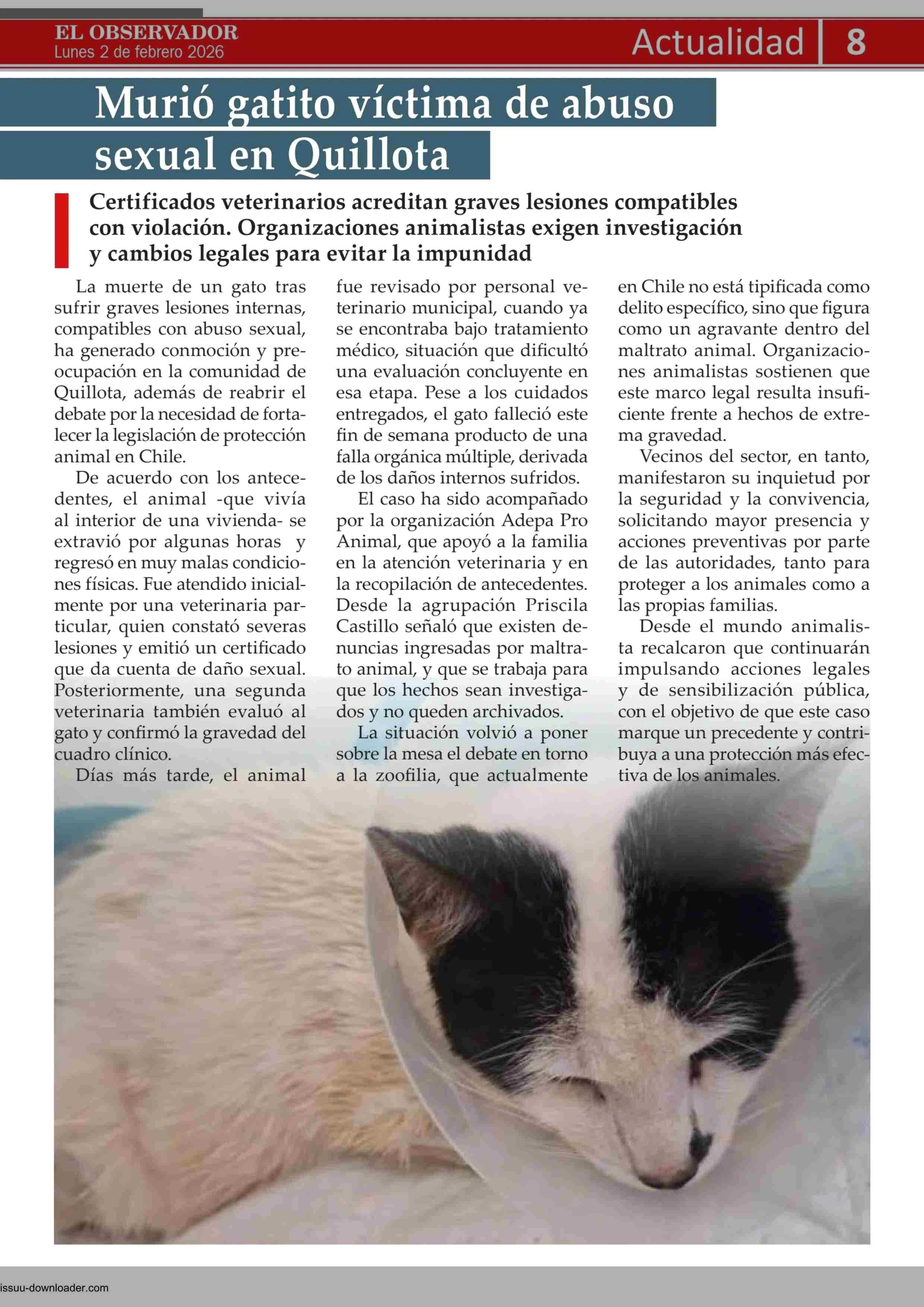 _ Murió gatito víctima de abuso sexual en Quillota 02-02-2026 El Observador Vespertino |